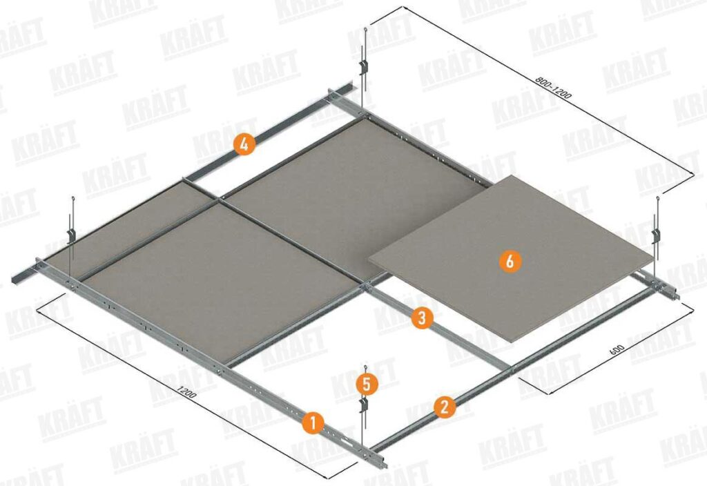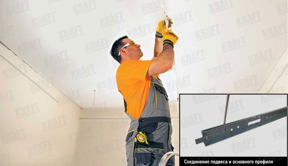 Закрепват се към основния таван с помощта на анкерни дюбели със стъпка 800 – 1200 мм. Най-близките до стената куки трябва да бъдат закрепени на разстояние не повече от 600 мм от нея. За осветителните тела е необходимо да се използват допълнителни окачвания (от 1 до 4 в зависимост от размера и теглото им). Изключение правят LED лампите KRAFT – те не изискват допълнителни.