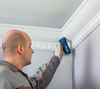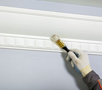 Боядисайте корниза следвайки инструкциите на производителя, започвайки от ъглите на помещението и елементите.