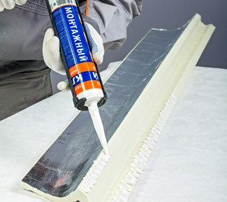 Нанесете универсално лепило равномерно по цялото протежение на профила. Дебелината на нанесения слой трябва да бъде в рамките на 3-5 мм.