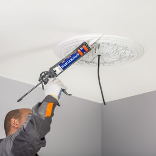 Почистете зоната на контакт със стената и тавана с помощта на влажна кърпа. Навлажнете кърпата с вода, в случай на работа с Монтажно лепило и с разредител, при работа с Универсално или Лепило за свързващи фуги.