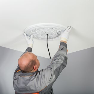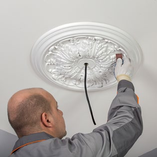 Боядисайте розетката (и тавана, в случай на нужда) в подходящ цвят според инструкциите на производителя на боите.