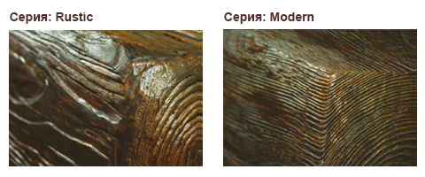 Серията Rustic включва елементи, подходящи за пресъздаване на уютния стил и традиционното внушение на сградите в провинциален стил. Така например, с рустикалните решения можете да пренесете красотата на дървения материал от класическата вила в гората във всеки един интериорен проект. Решенията в тази серия се характеризират с по-ясно изразен релеф и структура, наподобяваща “по-груба” дървесина.