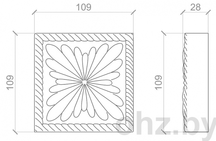 - дължина/широчина : 109 mm