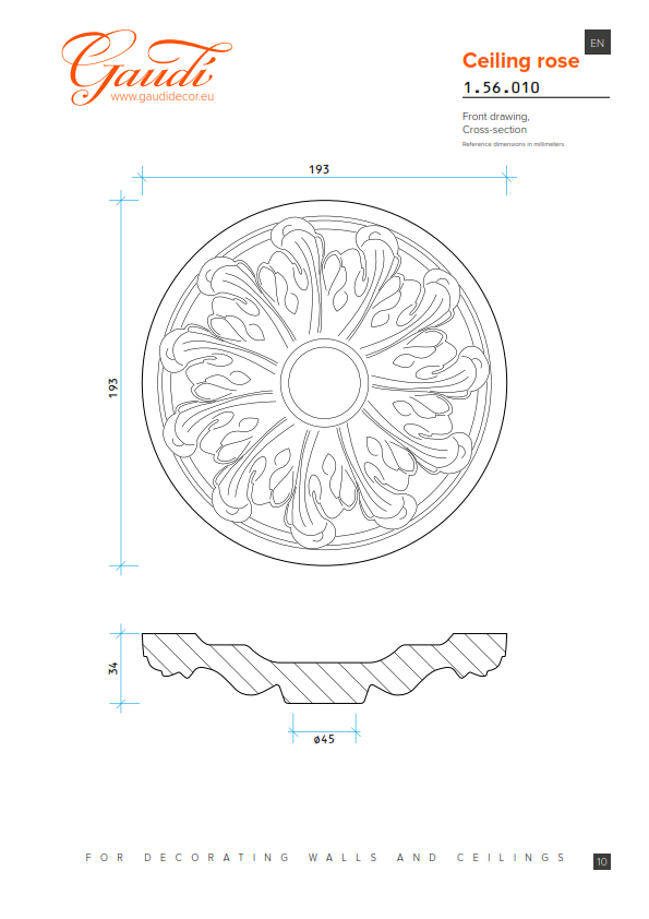 Сечение Чертеж на детайла, представящ сечението на избрания профил.