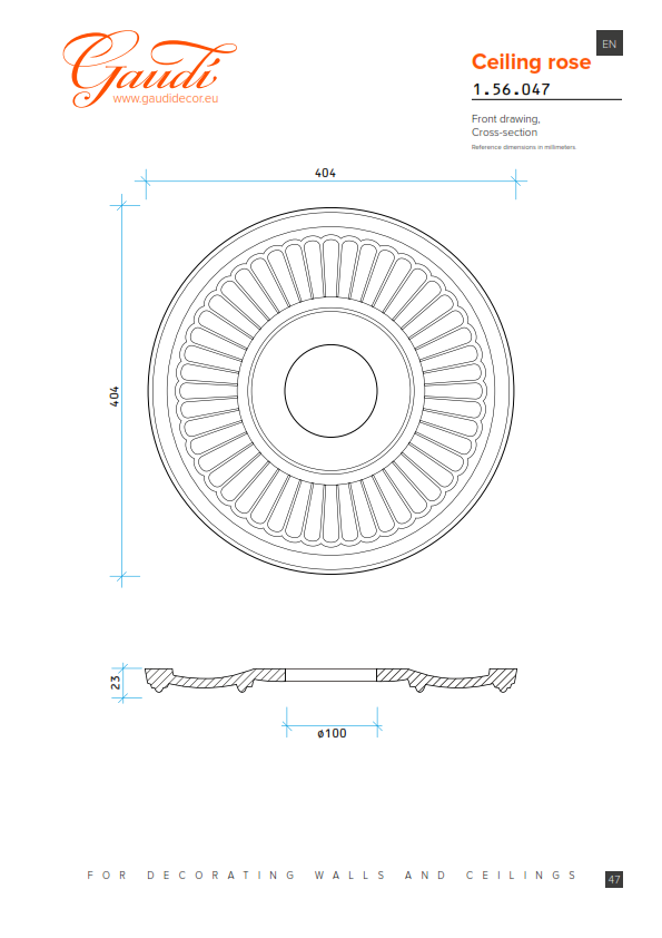 Сечение Чертеж на детайла, представящ сечението на избрания профил.