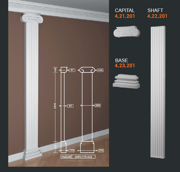 Процесът по монтажа на декоративния елемент е отговорна задача, която трябва да гарантира неговото здраво закрепване върху фасадата, както и неговата дълготрайност за целият период на експлоатация на сградата. За целта е задължително използването на специализирани продукти за монтажа, обработката на снадките и финшното запечатване на декоративните елменти. Не по-малко важна е и предварителната обработка и подготовка на основата. Всички тези продукти и аксесоари трябва да са специално проектирани да могат да устояват на натоварванията и атмосферни влияния, на които са подложени фасадите.