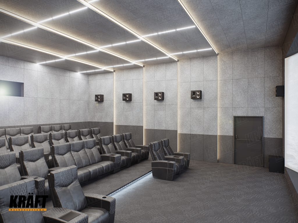 За максимална шумоизолация на помещението, акустичните панели KRAFT WoodAcoustic се монтират и по стените на помещението. Монтажът става лесно и безпроблемно посредством закрепване към дървени релси или метален профил.