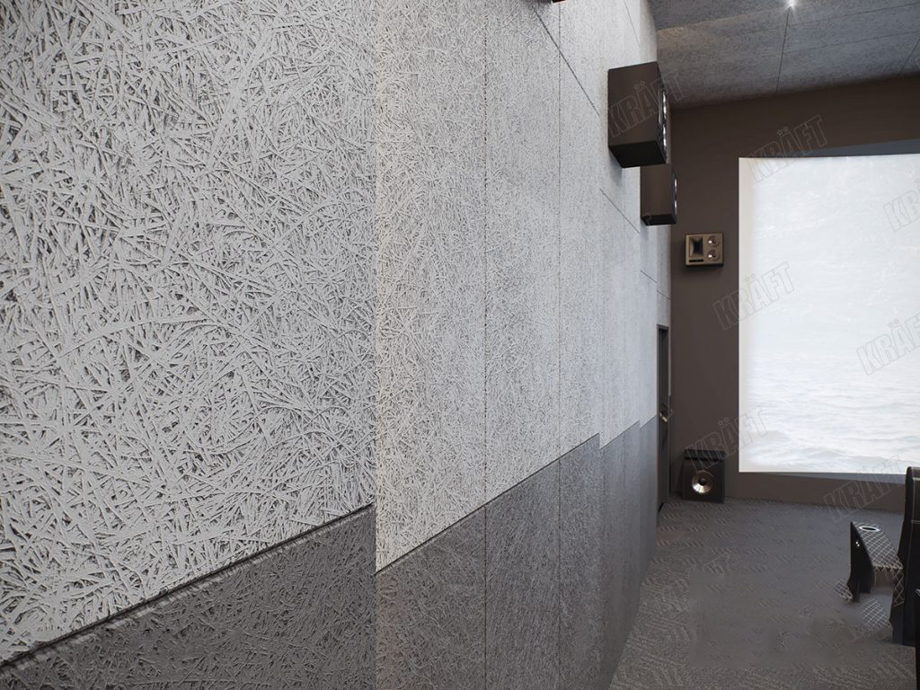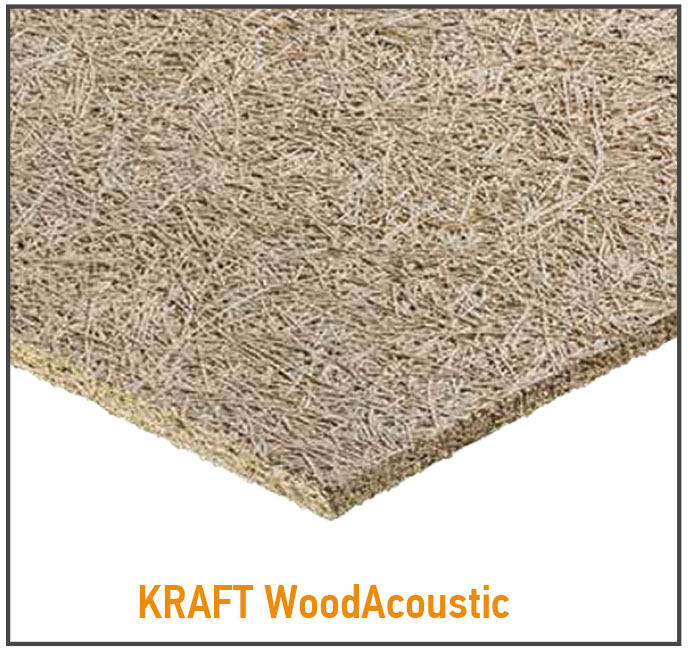Серията акустични панели KRAFT WoodAcoustic са екосъобразни решения за топлоизолация и шумоизолация на всякакви помещения – от тези в дома и офиса, до площите в търговски и обществени сгради. Панелите са изработени от природосъобразни материали и се характеризират с високите си топло- и шумоизолационни свойства. Всеки един акустичен панел е изработен от 48% фини дървесни влакна, смесени с портланд цимент и мраморен прах. Минерализацията на дървесината под налягане запазва механичните свойства на влакната, но в същото време блокира процеса на биологично износване и подобрява топло- и шумоизолационните свойства на материала.
