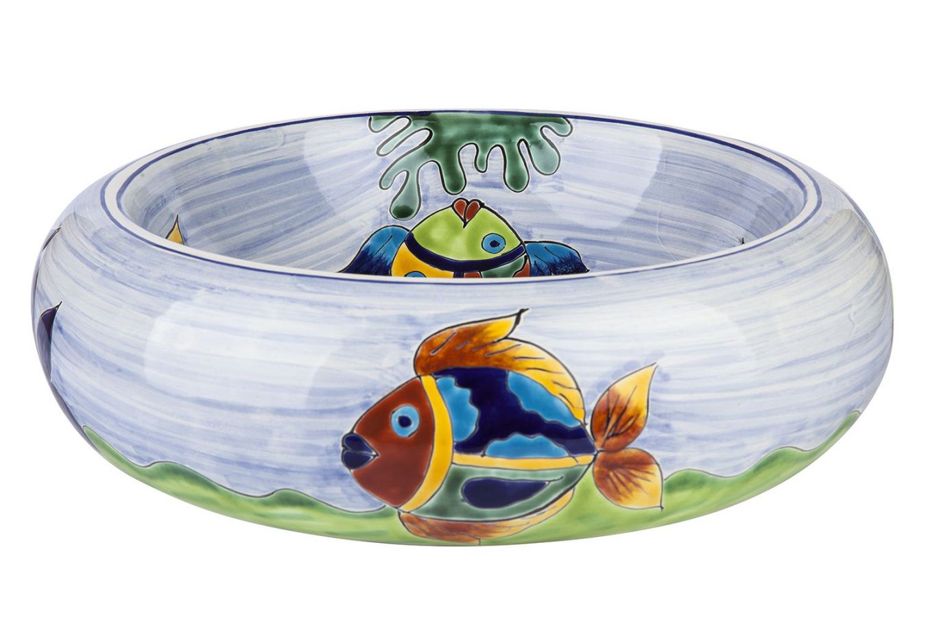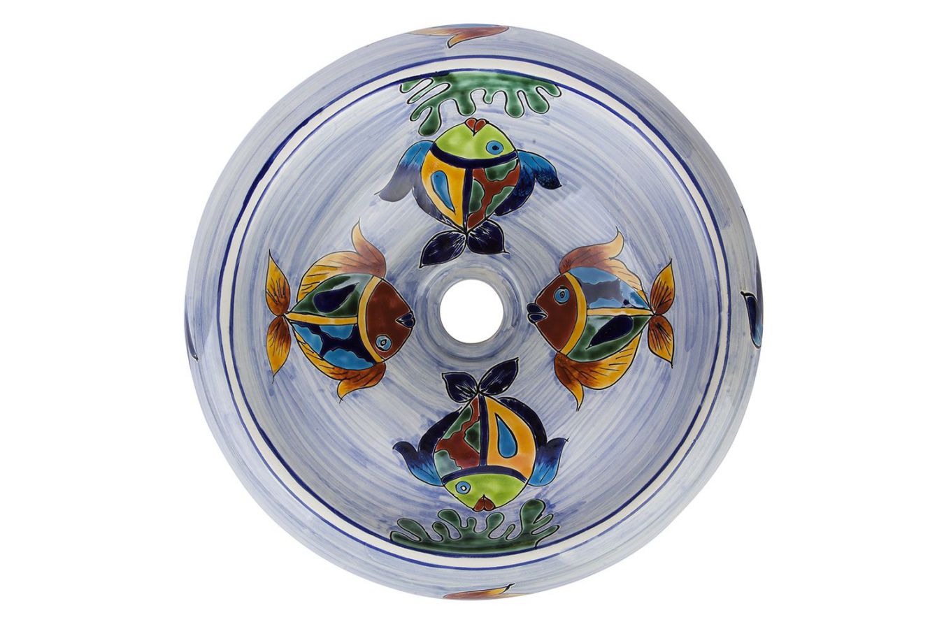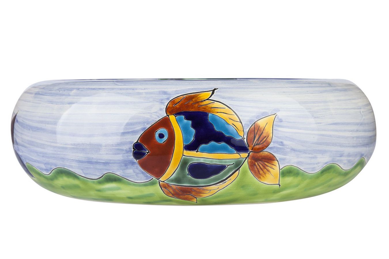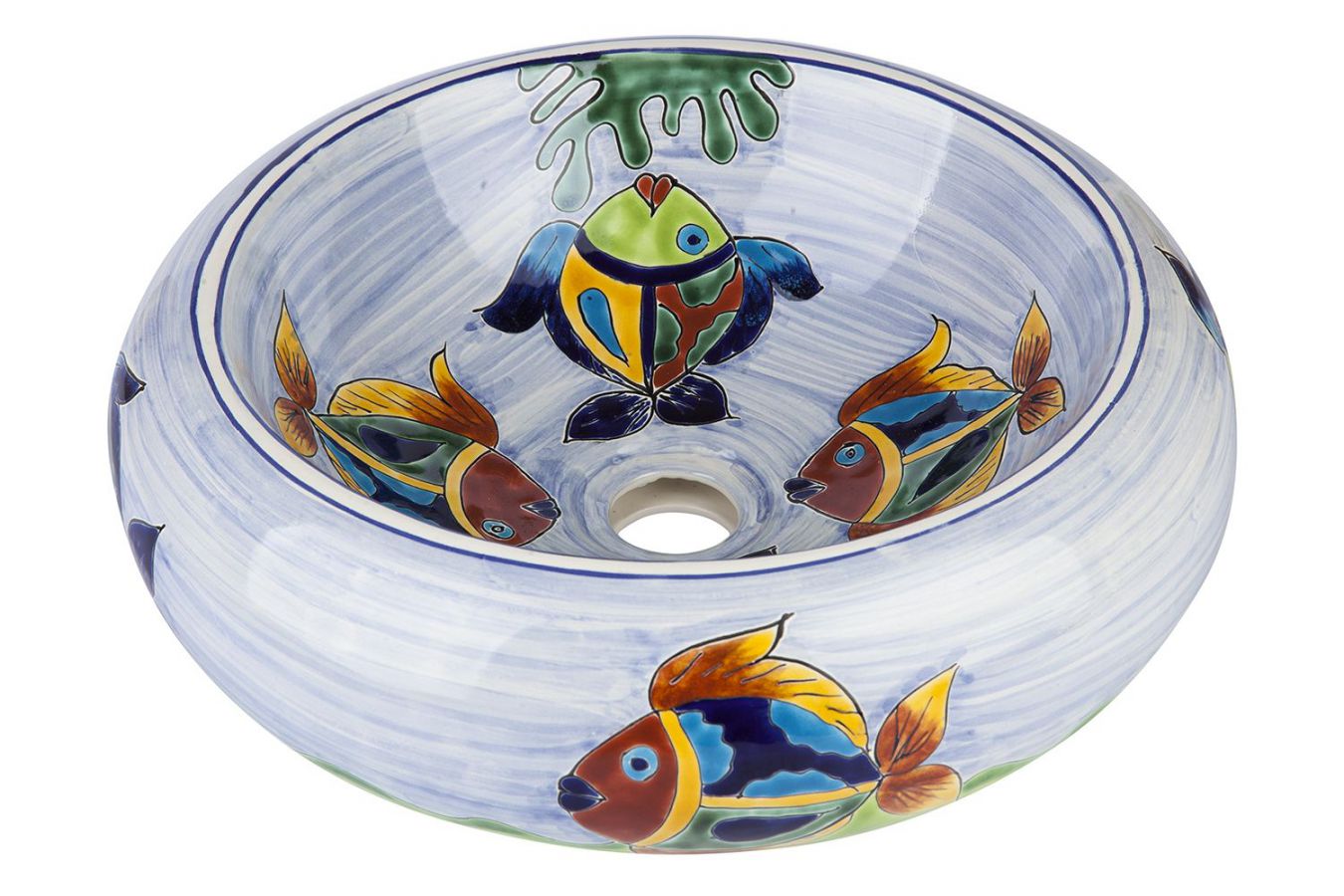 Керамичният умивалник е изработен и изрисуван от мексикански майстори.
