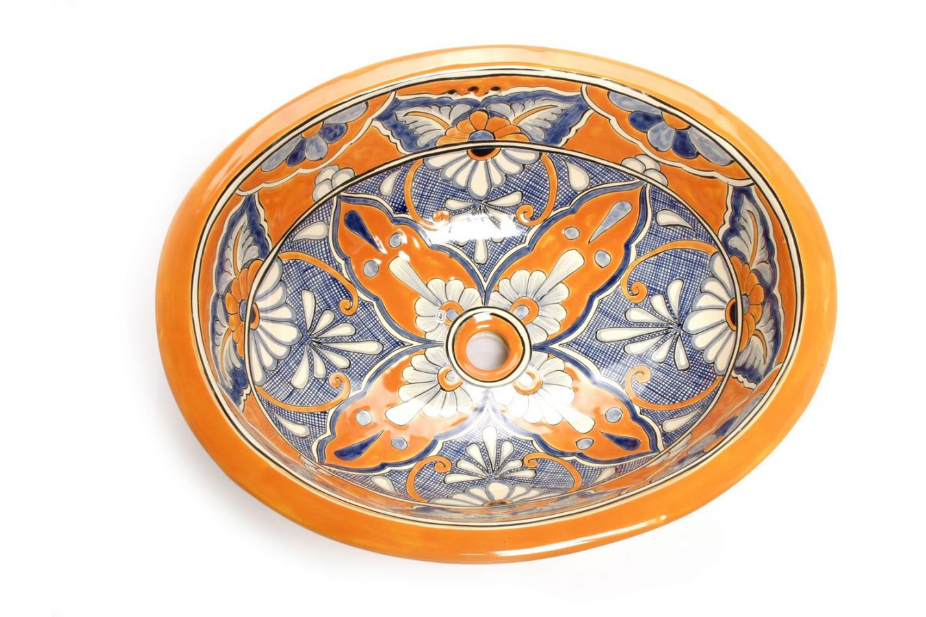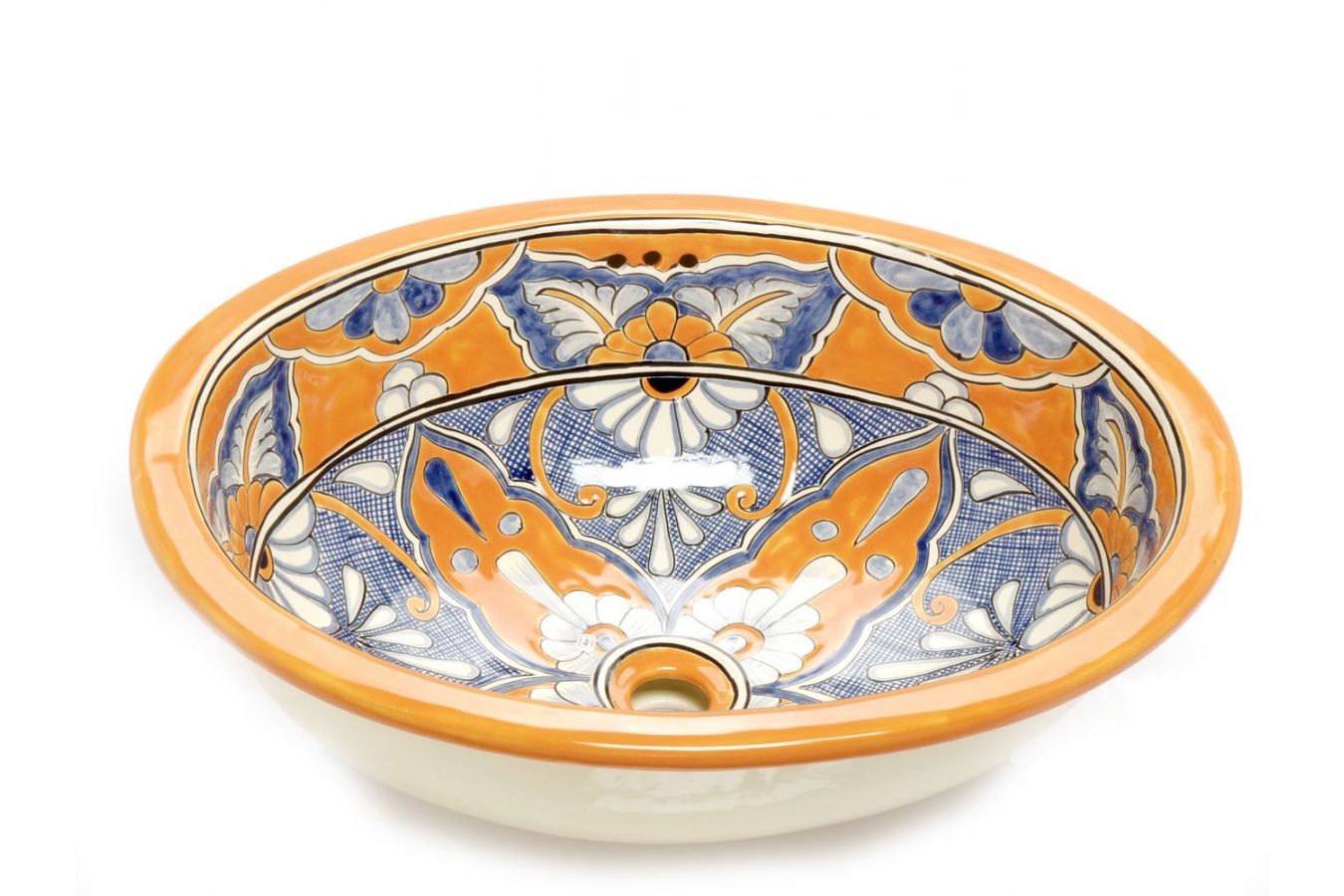 Керамичният умивалник е изработен и изрисуван от мексикански майстори.