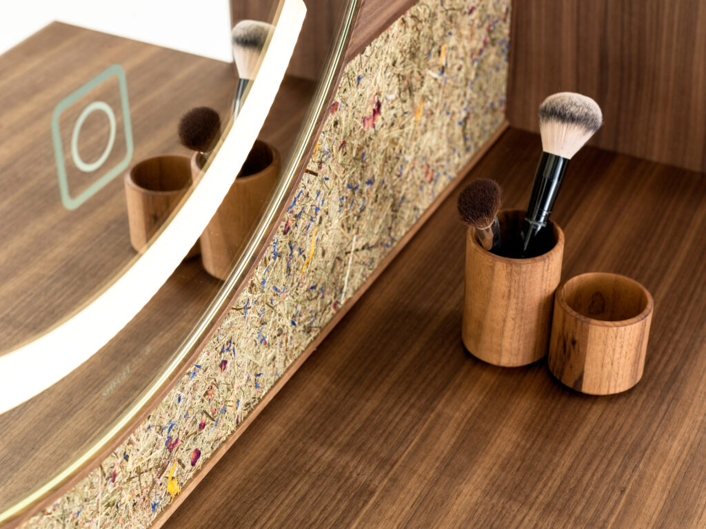 Като декор – монтаж на Organoid® естествени повърхности върху ленен филц в дървообработването: