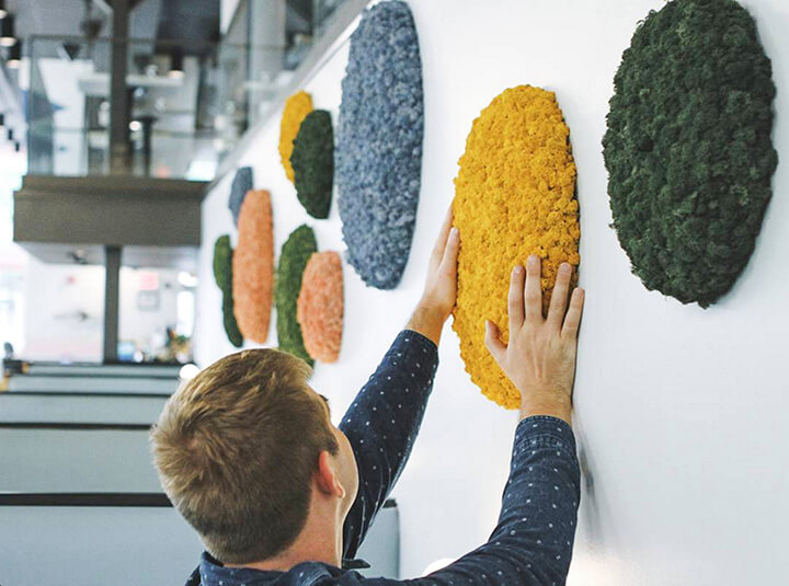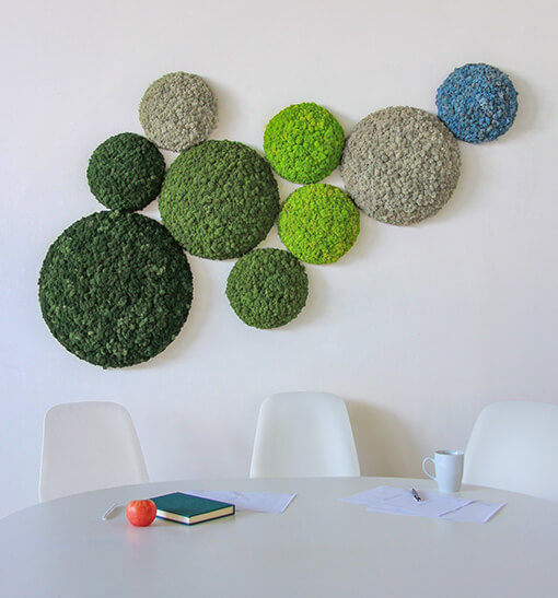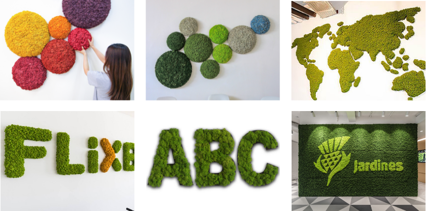 Възможността за работа по индивидуален проект на клиента ни позволява да осъществяваме всякакви идеи, създавайки красиви и въздействащи арт инсталации от декоративен мъх. Арт инсталациите могат да се изработват от различни видове мъх (топчест, плосък и скандинавски мъх) и различни консервирани растения (папрат, традиционен и бейби евкалипт) и в многообразие от цветове и форми без ограничение в размерите.