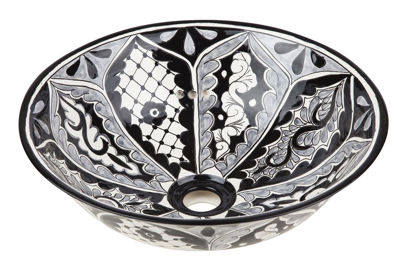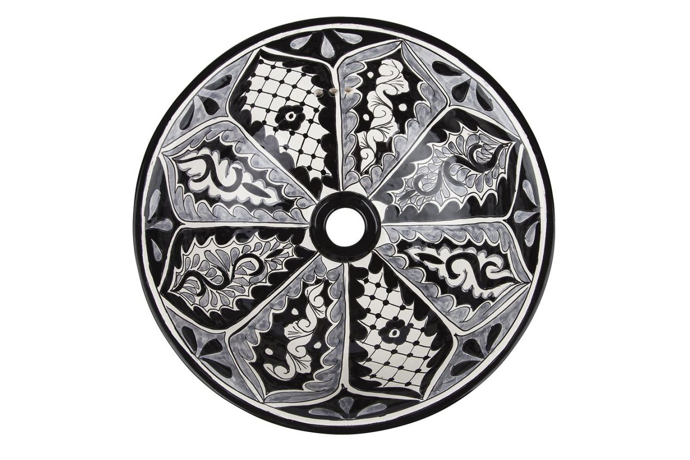Керамичен умивалник за плот, произведен в Мексико. Богато декорирана и ръчно рисувана мексиканска мивка. Умивалникът е остъклен, което го прави устойчив на надраскване и протриване на шарката.