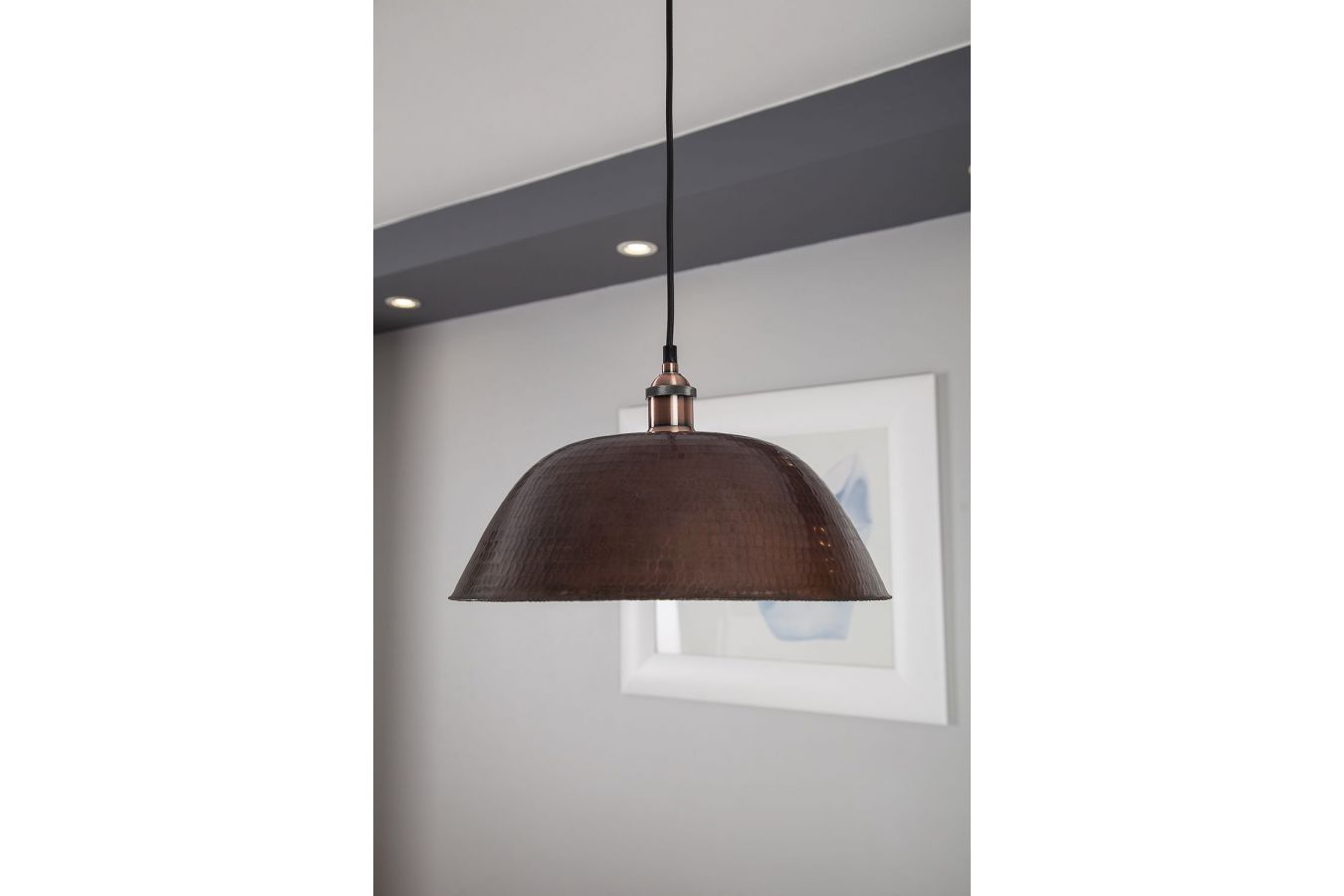 Абажурът на медния плафон е изработен от най-висококачествени материали и повърхността му е допълнително декорирана. Медната лампа е много издръжлива и практична вещ, а нанесеният слой патина удължава живота на продуктите.