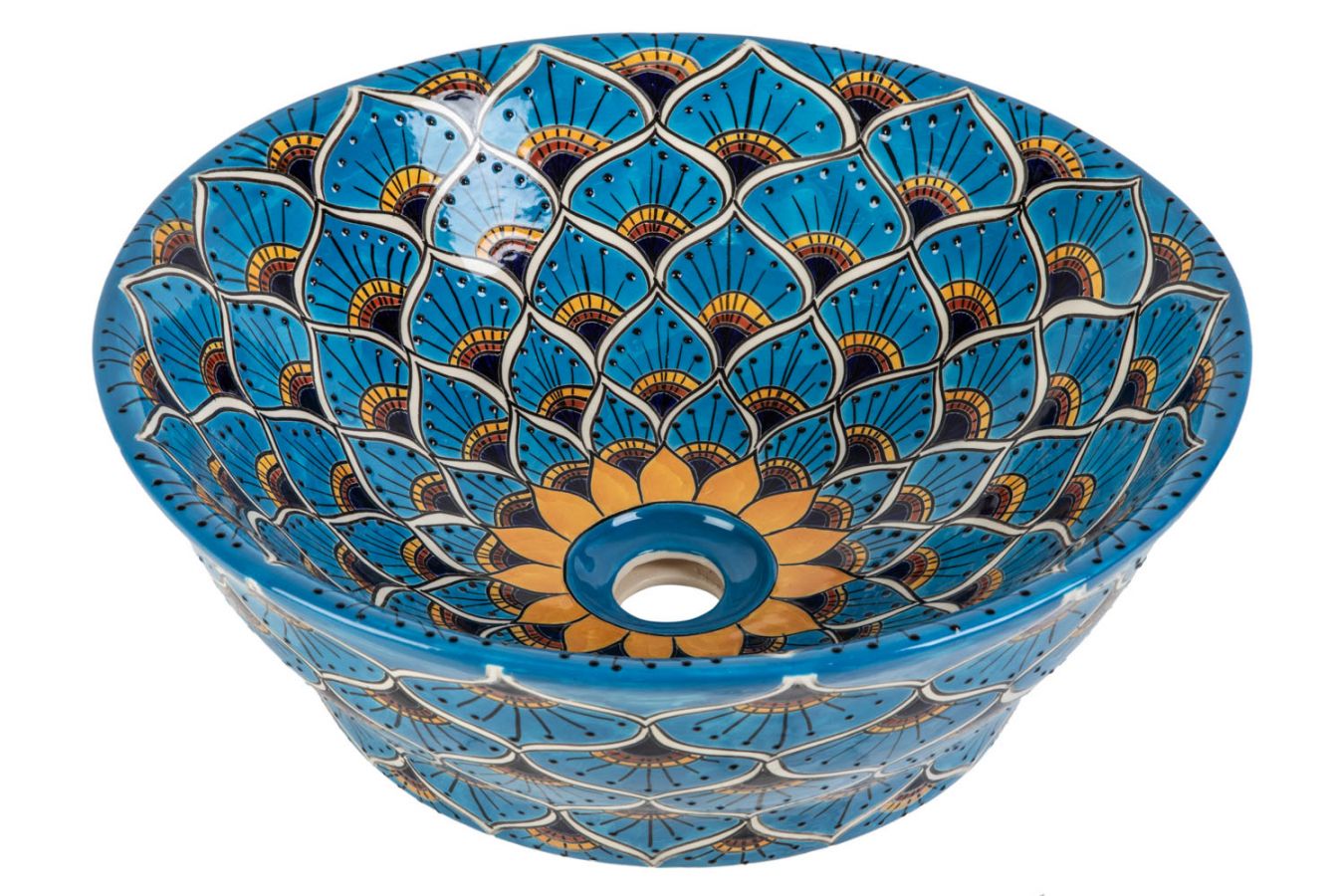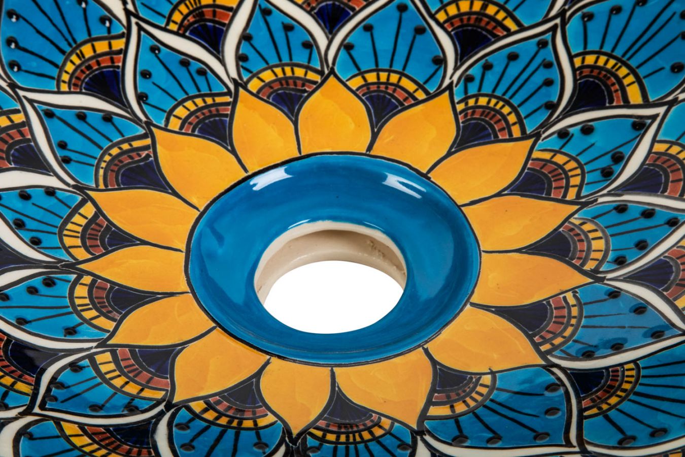 Керамичният умивалник е изработен и изрисуван от мексикански майстори.
