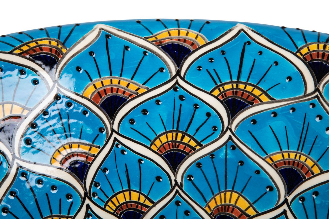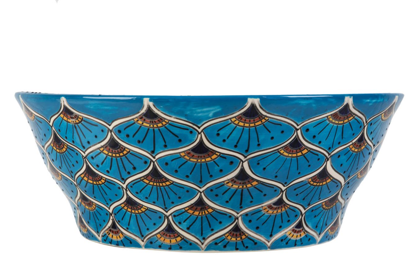- Керамичен умивалник, декориран с релефни мотиви в контурна боя, релефен модел.