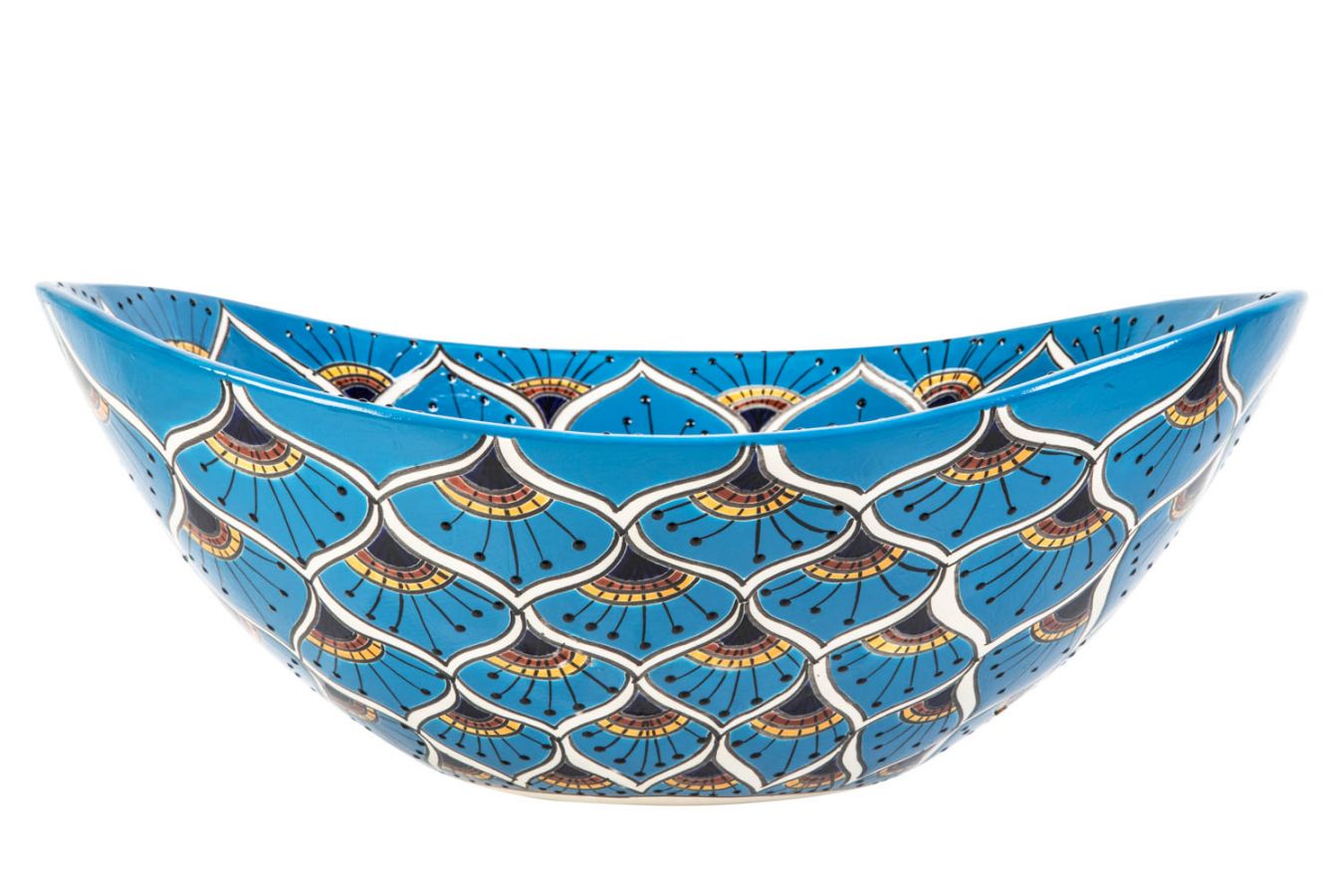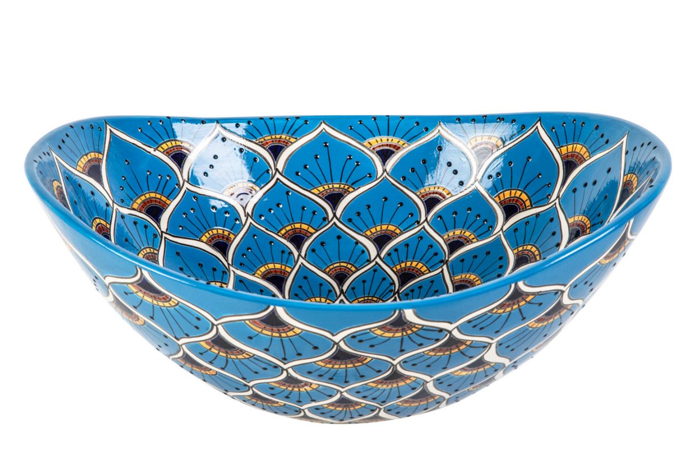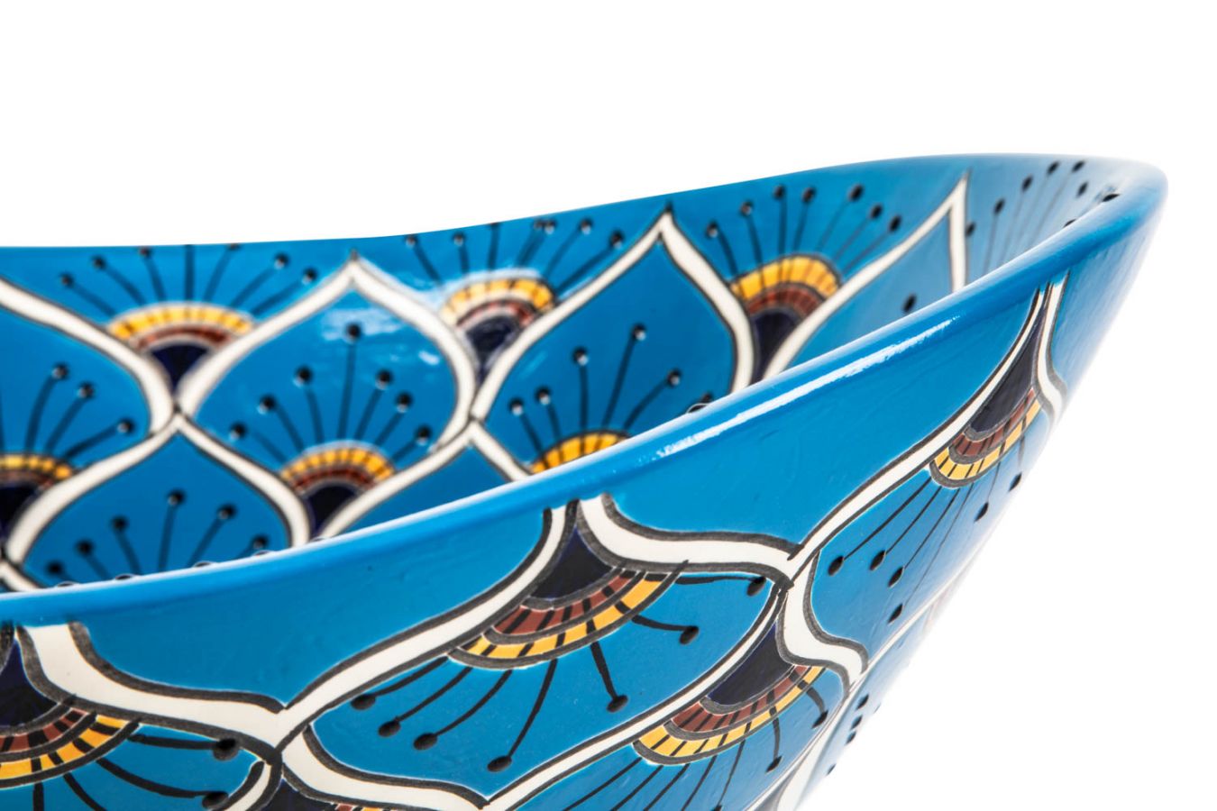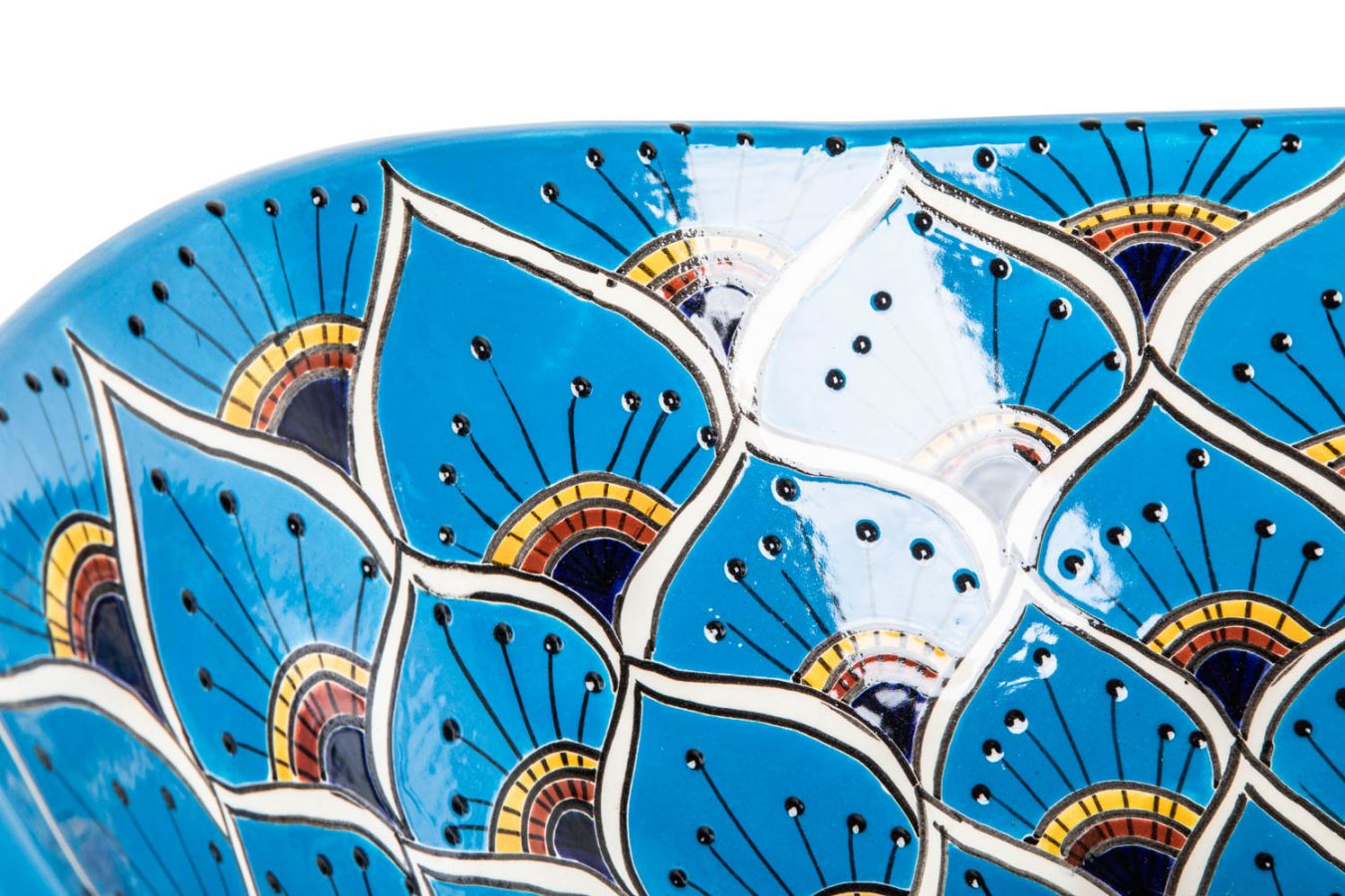 Керамичен умивалник за плот, произведен в Мексико. Богато декорирана и ръчно рисувана мексиканска мивка. Умивалникът е остъклен, което го прави устойчив на надраскване и протриване на шарката.