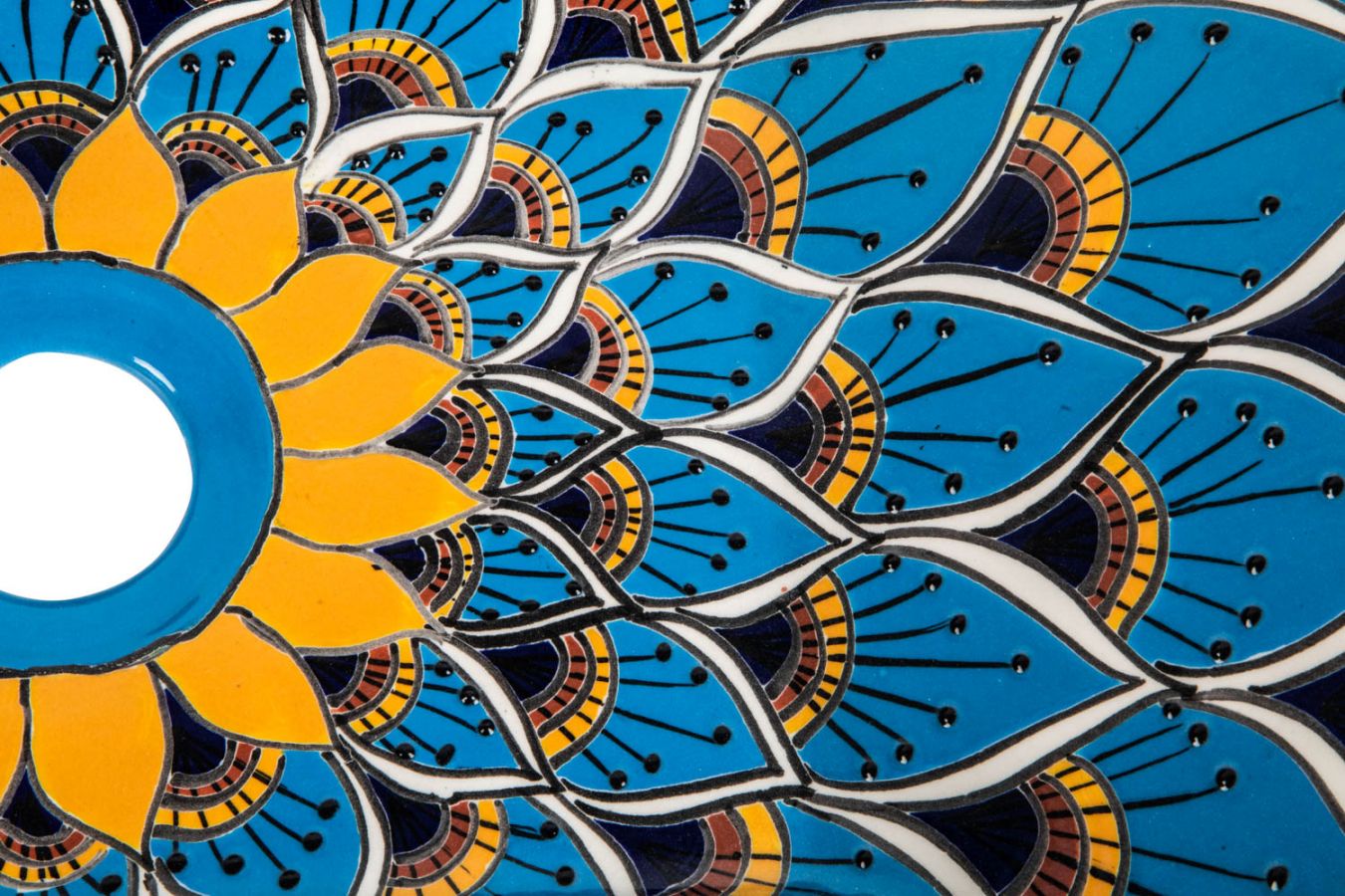 Керамичен умивалник за плот, произведен в Мексико. Богато декорирана и ръчно рисувана мексиканска мивка. Умивалникът е остъклен, което го прави устойчив на надраскване и протриване на шарката.