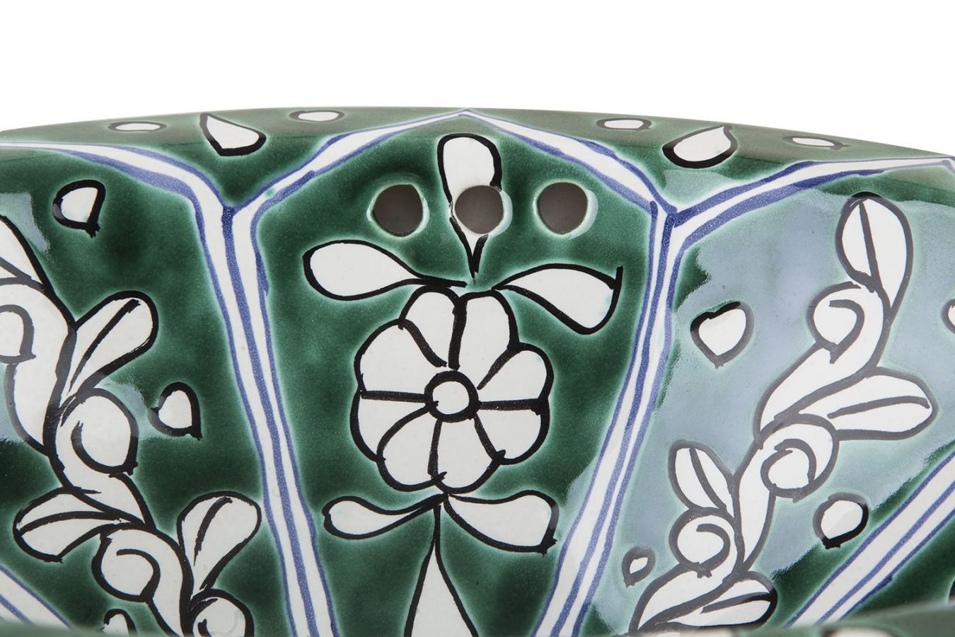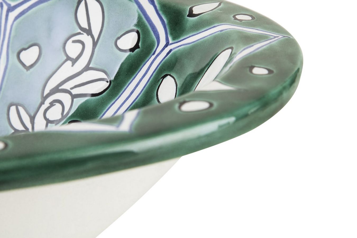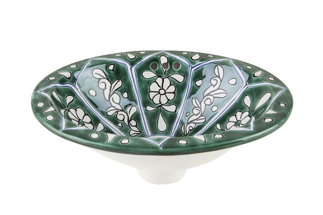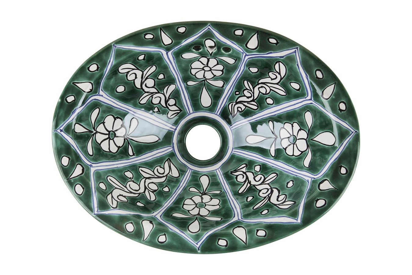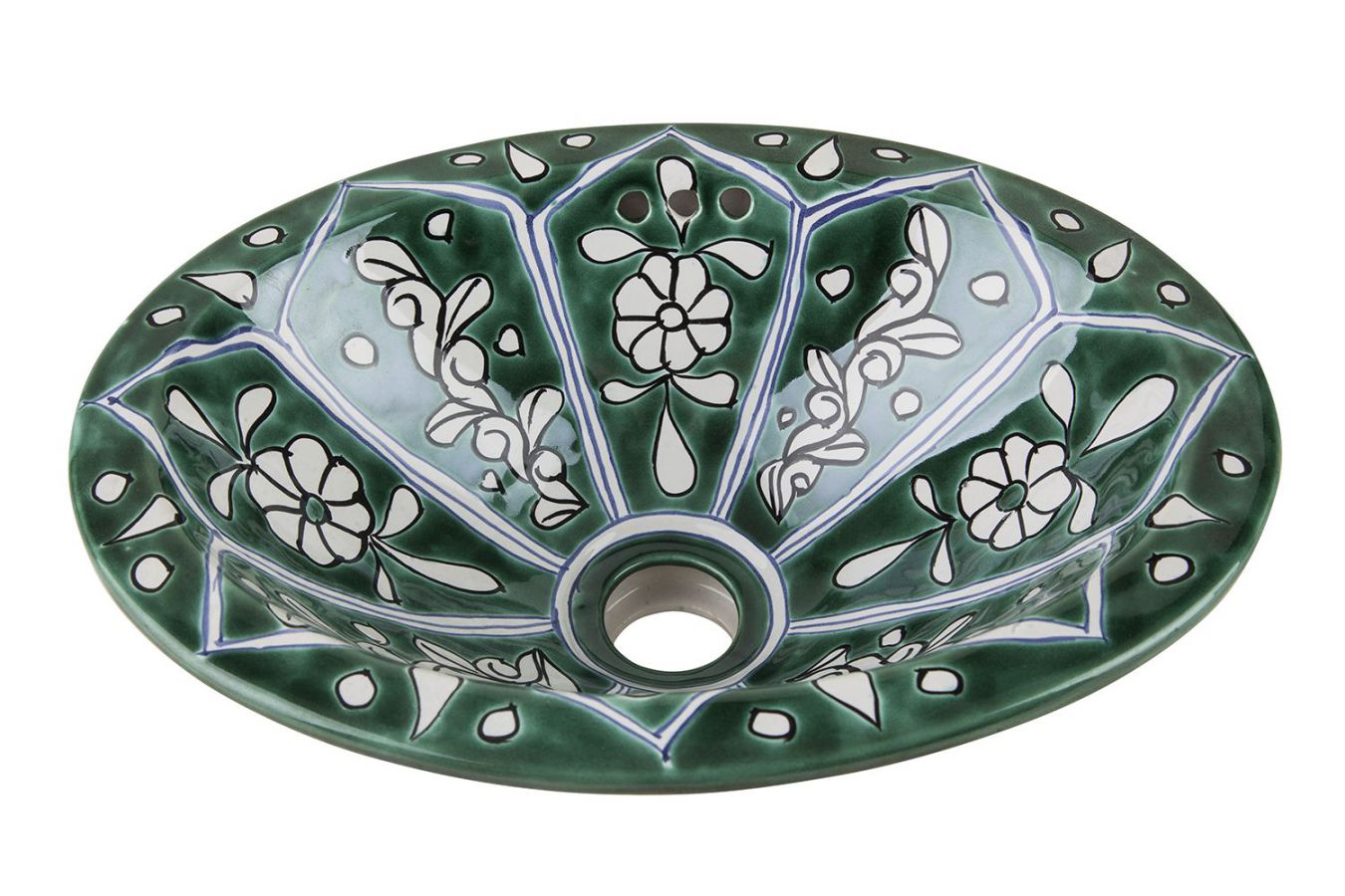 Керамичен умивалник за плот, произведен в Мексико. Богато декорирана и ръчно рисувана мексиканска мивка. Умивалникът е остъклен, което го прави устойчив на надраскване и протриване на шарката.