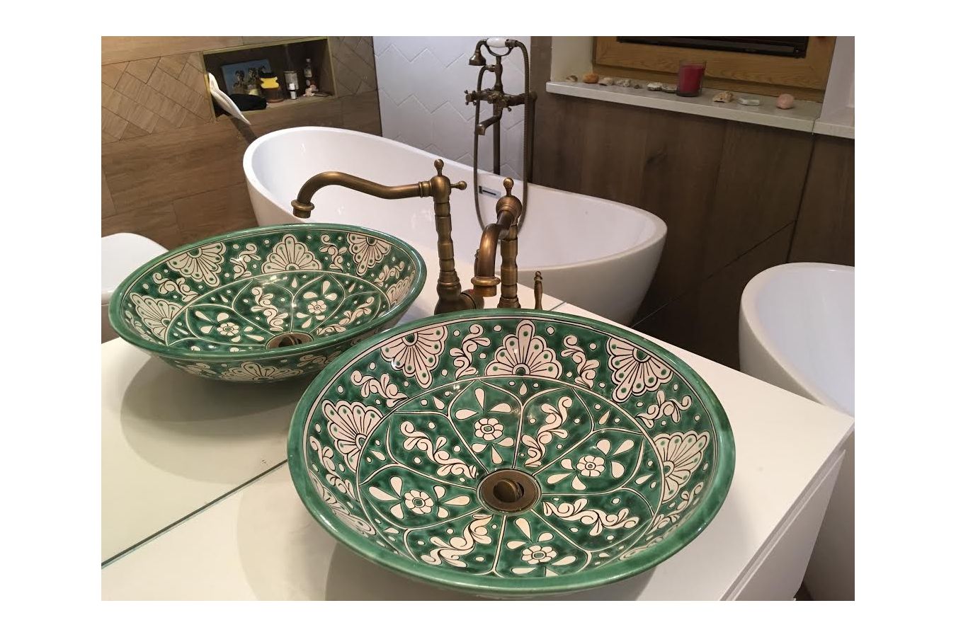 - Керамичен умивалник, ръчно декориран от художник от Мексико.