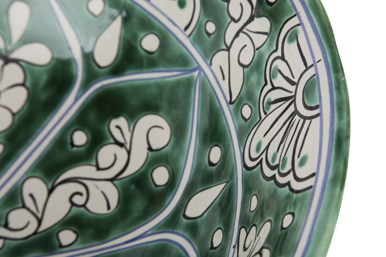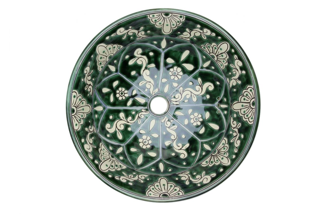 Керамичен умивалник за плот, произведен в Мексико. Богато декорирана и ръчно рисувана мексиканска мивка. Умивалникът е остъклен, което го прави устойчив на надраскване и протриване на шарката.