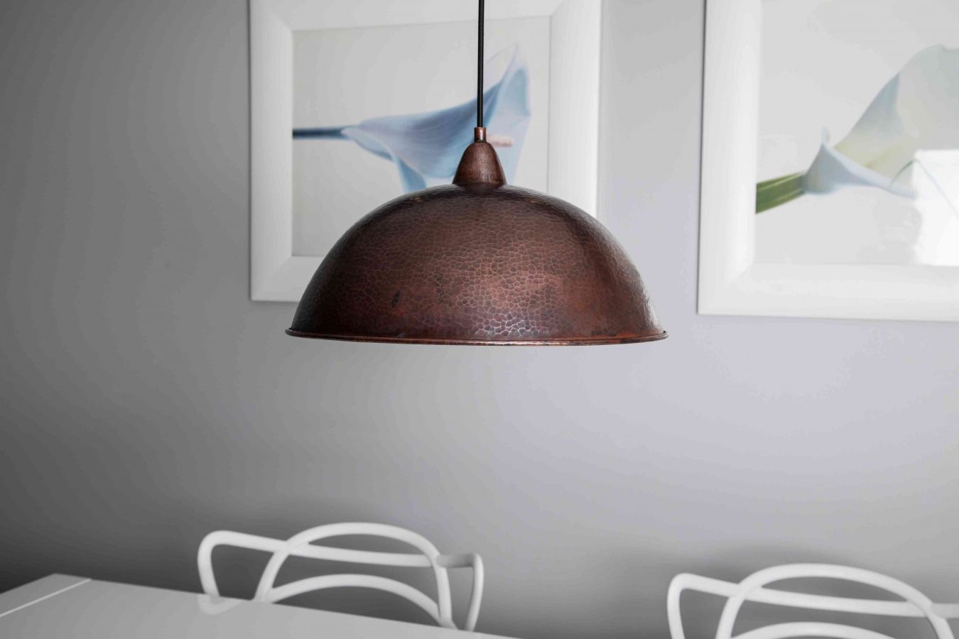 Ръчно кована медна лампа от Мексико. Всяка лампа е уникална и изработена с прецизност. Медта е защитена и не корозира.