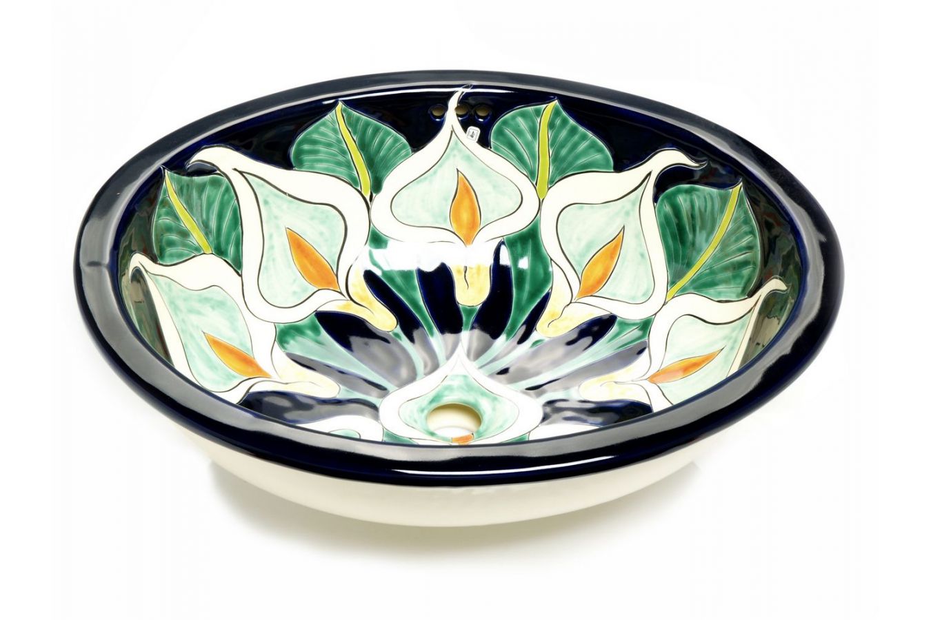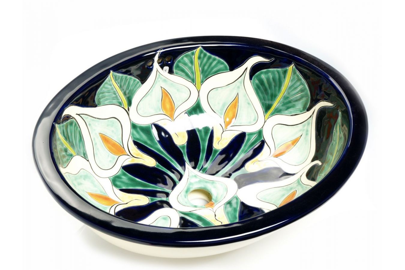 Керамичен мексикански умивалник, ръчно изработен от занаятчии. Мивката работи добре в аранжировка с всеки плот или шкаф.