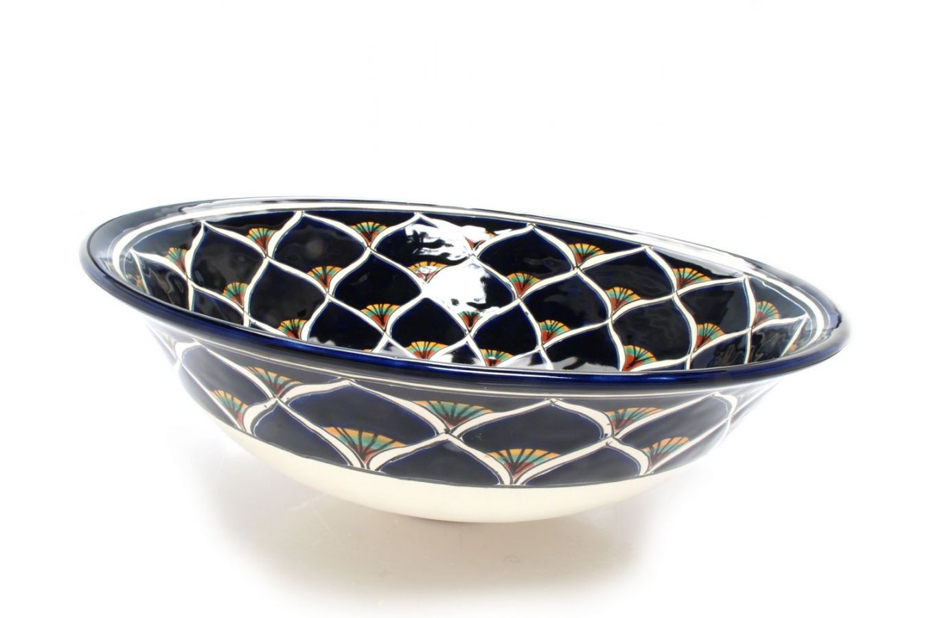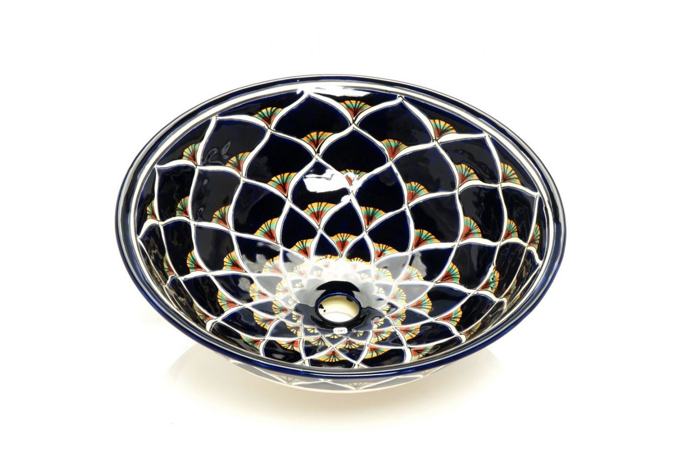 Керамичен умивалник за плот, произведен в Мексико. Богато декорирана и ръчно рисувана мексиканска мивка. Умивалникът е остъклен, което го прави устойчив на надраскване и протриване на шарката.