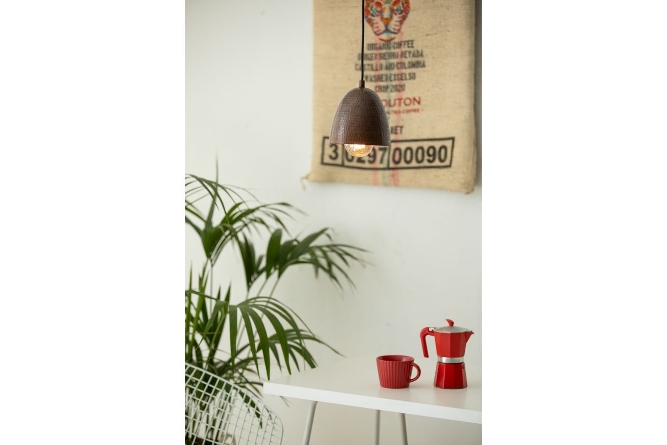 Ръчно кована медна лампа от Мексико. Всяка лампа е уникална и изработена с прецизност. Медта е защитена и не корозира.