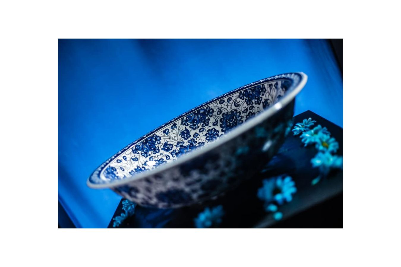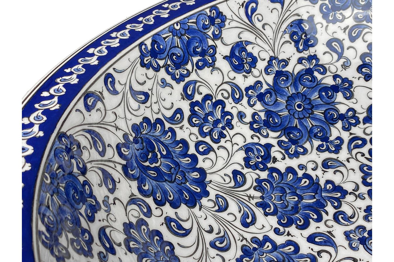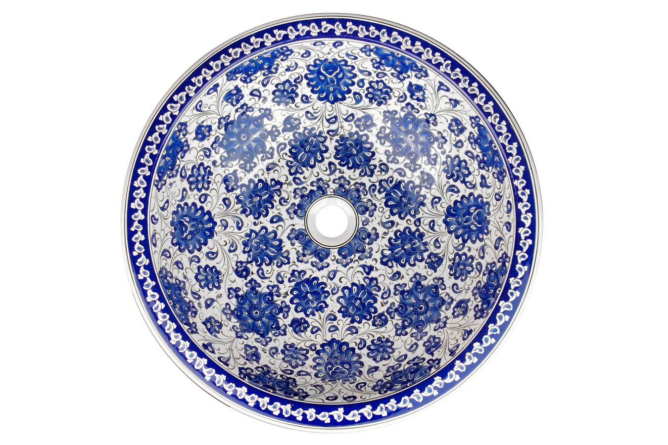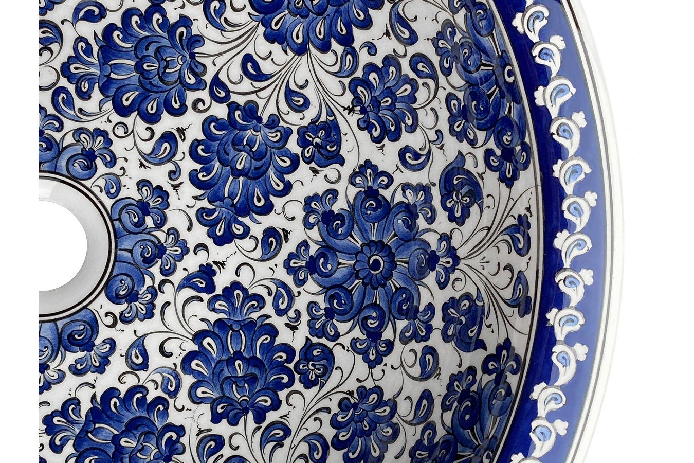 Ръчно рисувана турска мивка, произведена в района Кютахя, известен със своята керамика. Керамичният умивалник е остъклен, което го прави устойчив на надраскване и избледняване на цвета. Мивката ще се впише в интериора на всяка баня.