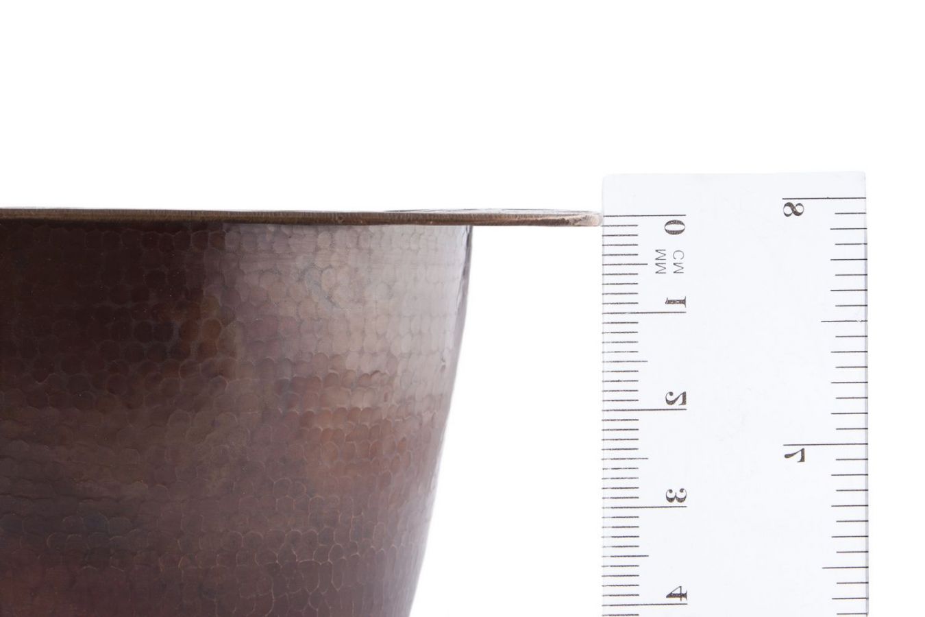 Вграждащ се умивалник от мед. Мивката произхожда от Мексико, където е ръчно изкована от занаятчия. Мивката не е подложена на корозия по време на употреба.