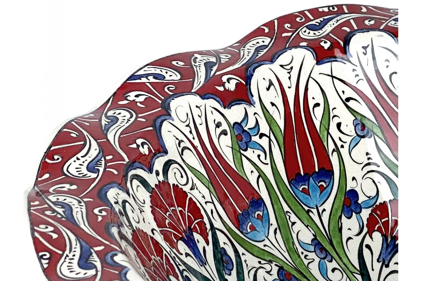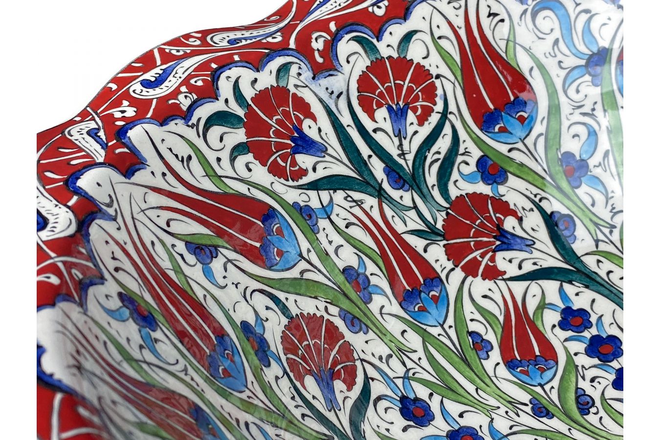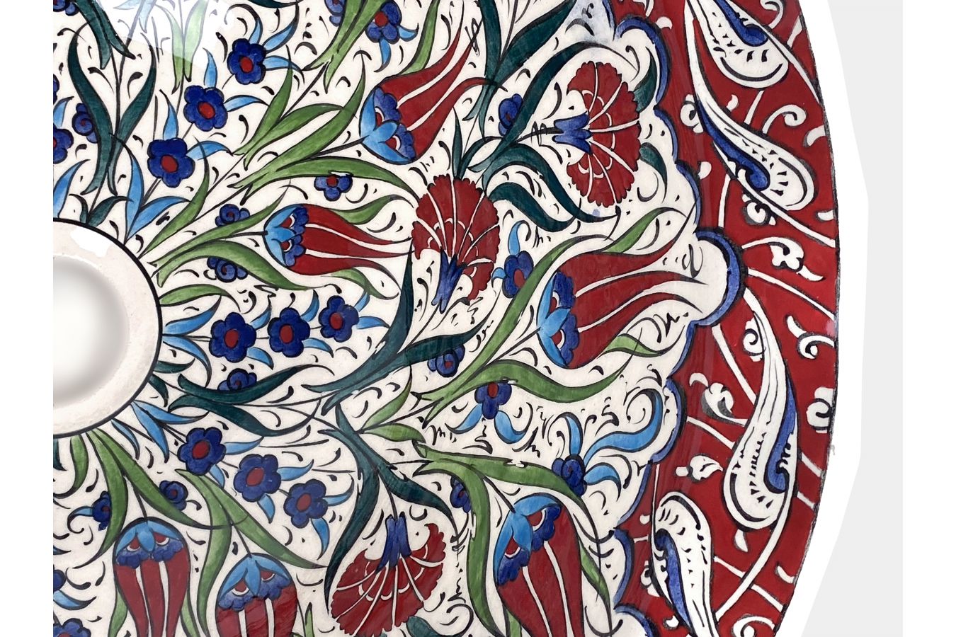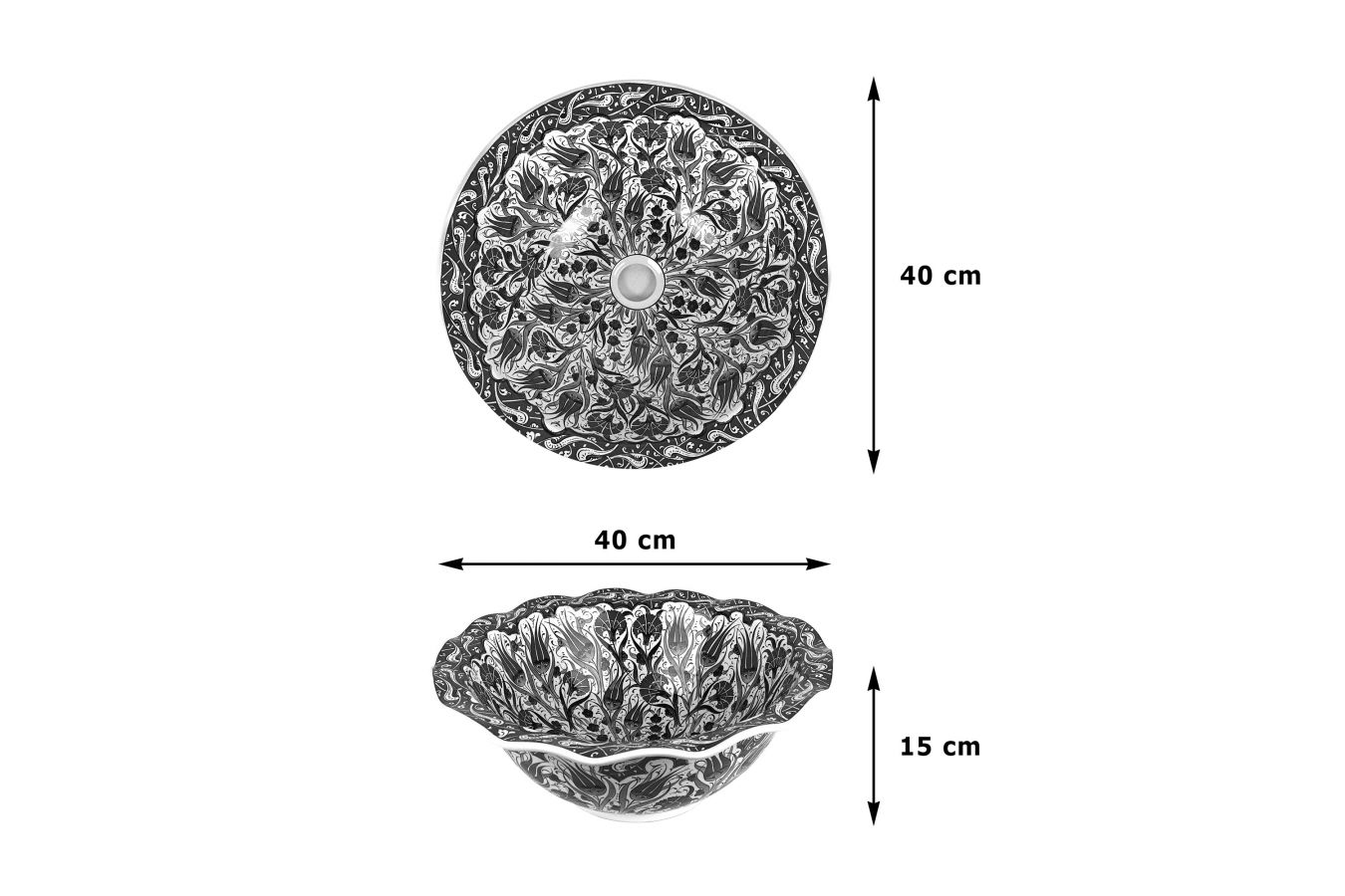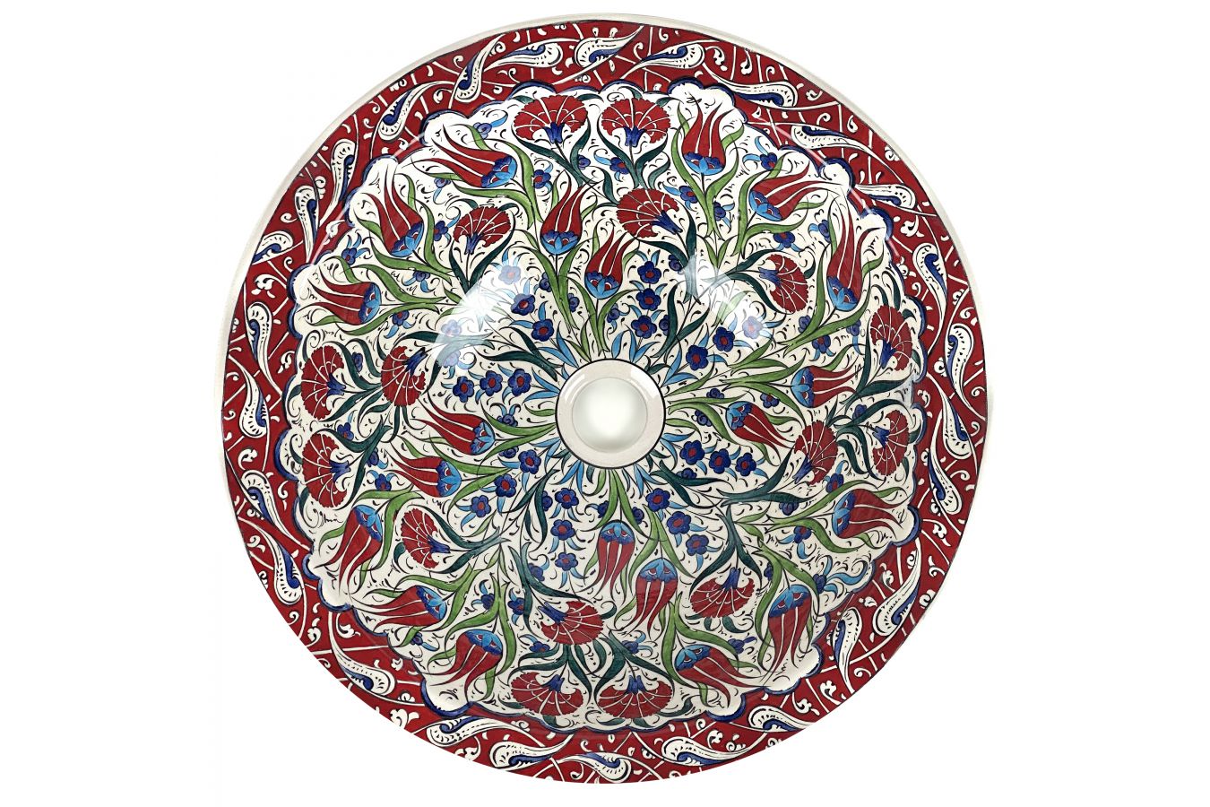 Ръчно рисувана турска мивка, произведена в района Кютахя, известен със своята керамика. Керамичният умивалник е остъклен, което го прави устойчив на надраскване и избледняване на цвета. Мивката ще се впише в интериора на всяка баня.