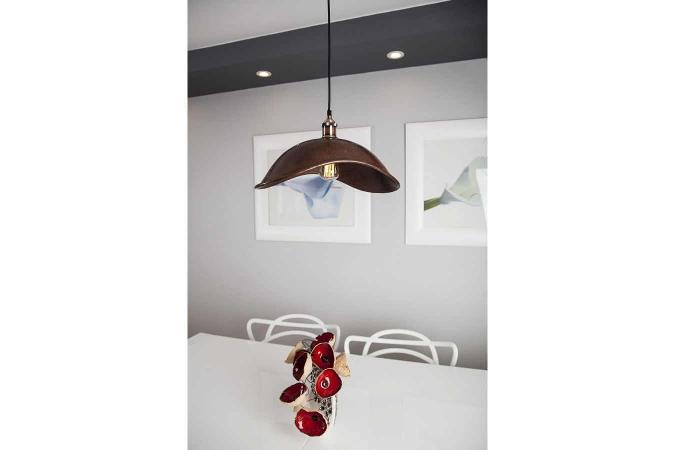 Ръчно кована медна лампа от Мексико. Всяка лампа е уникална и изработена с прецизност. Медта е защитена и не корозира.