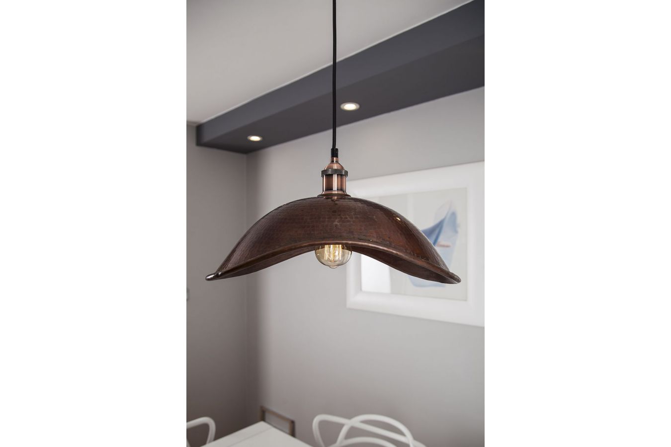 Абажурът на медния плафон е изработен от най-висококачествени материали и повърхността му е допълнително декорирана. Медната лампа е много издръжлива и практична вещ, а нанесеният слой патина удължава живота на продуктите.