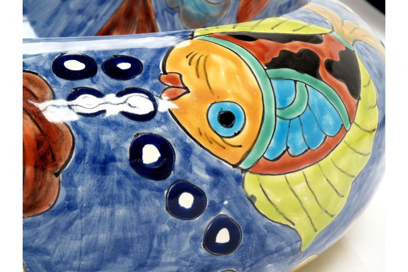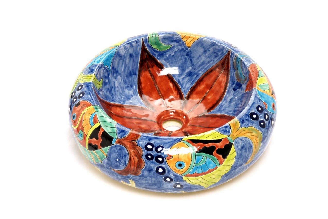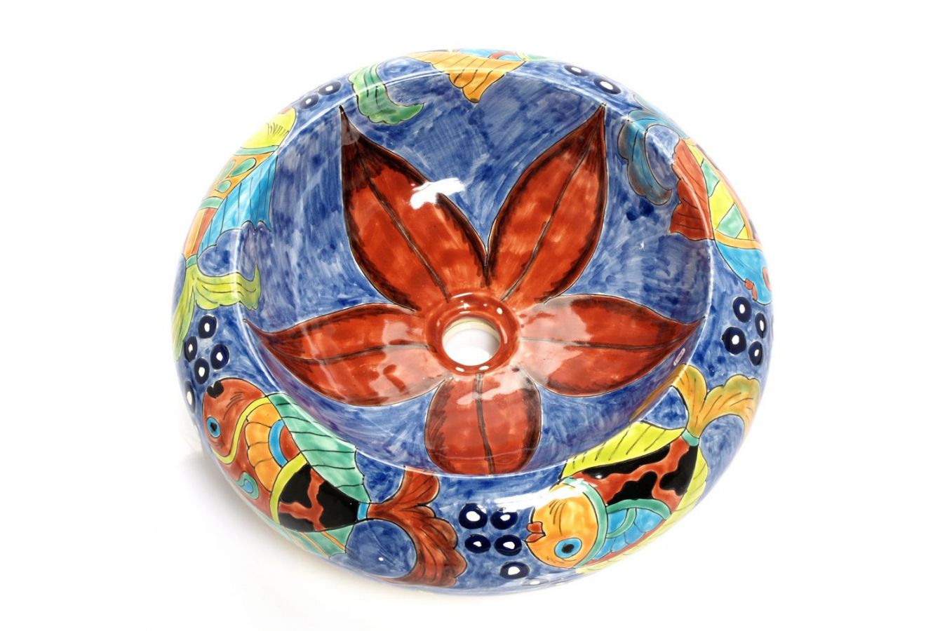 Керамичният умивалник е изработен и изрисуван от мексикански майстори.