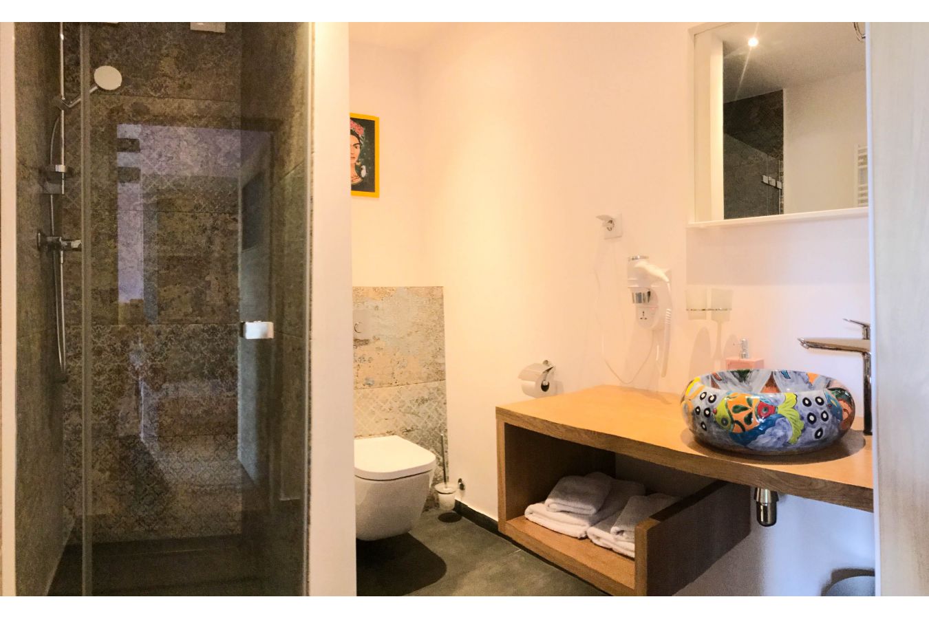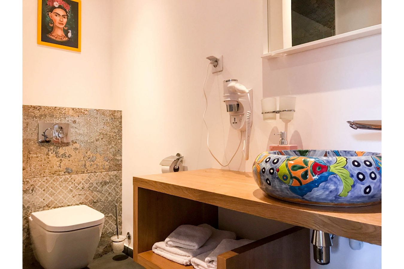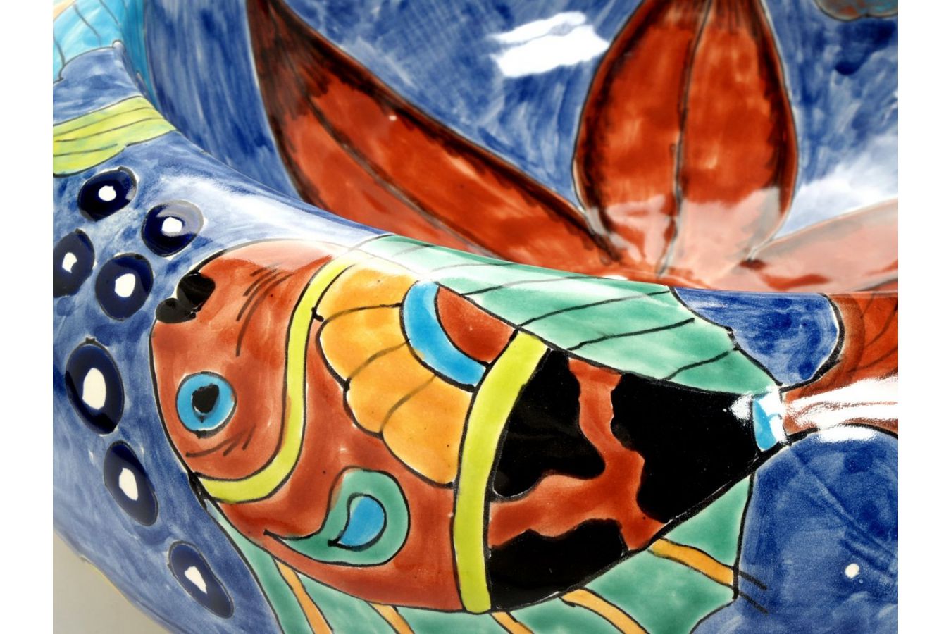 Керамичният умивалник е изработен и изрисуван от мексикански майстори.
