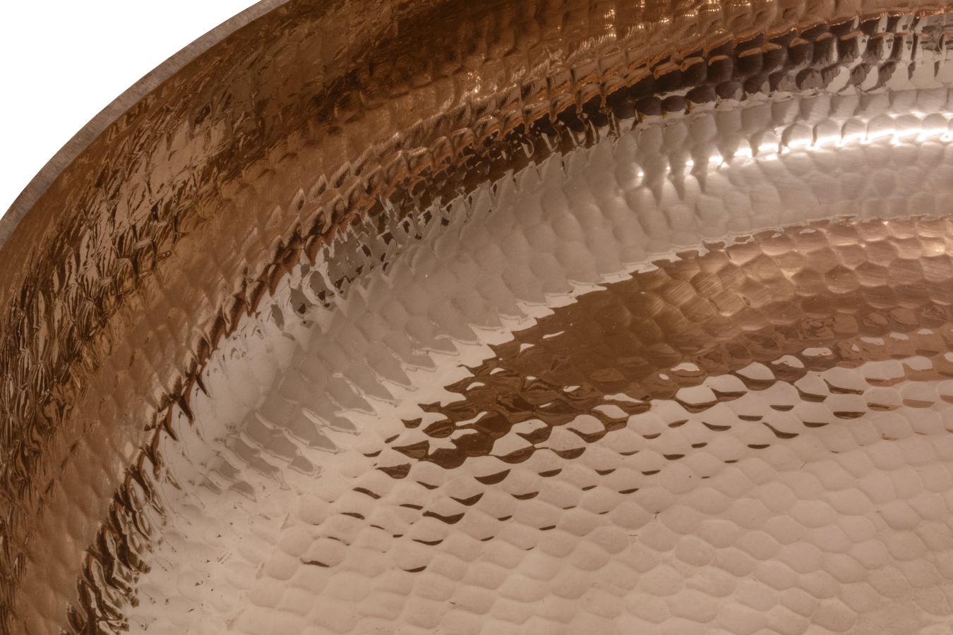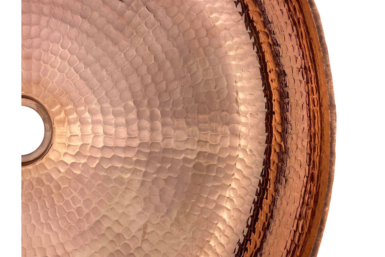 Медните мивки за плотове са ръчно изработени в Мексико. Характерен елемент е фината мащабна шарка, която е създадена в резултат на специална техника на коване с чук. Медните мивки са водоустойчиви и ще запазят оригиналния си цвят с години.