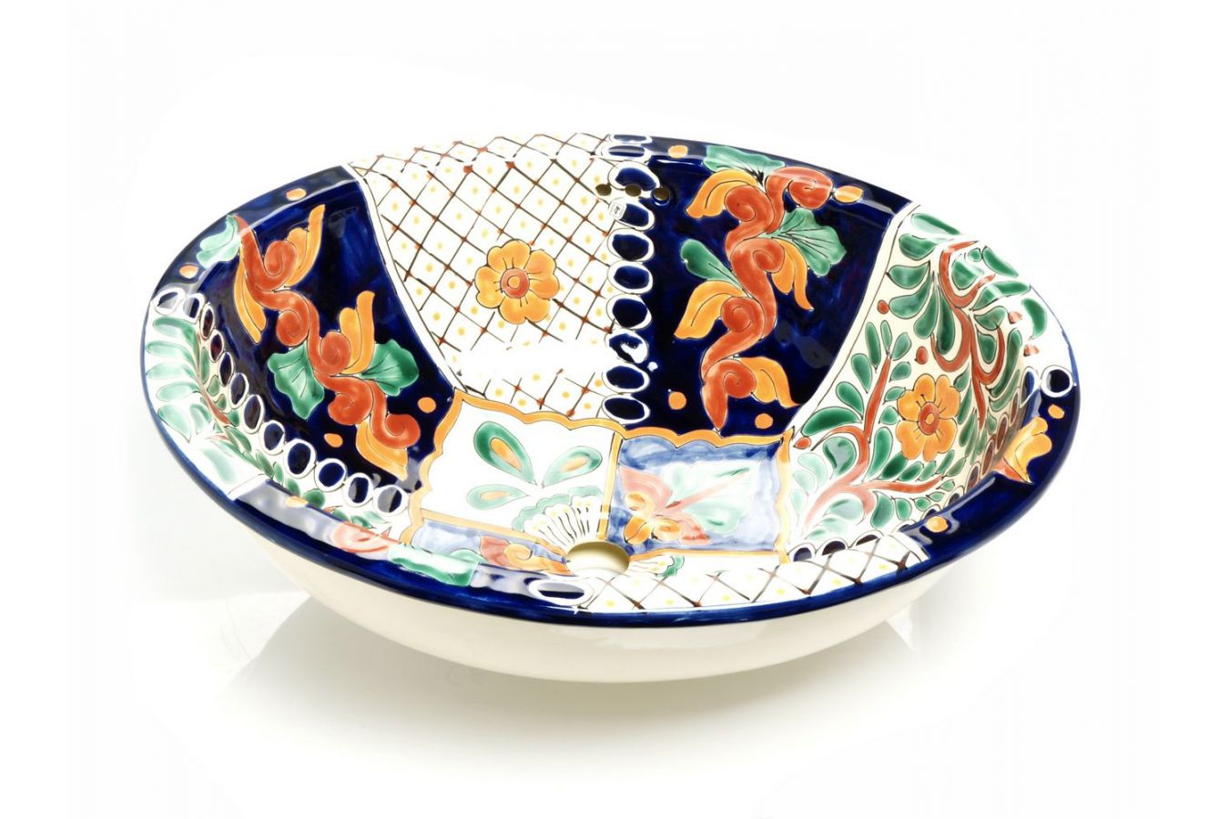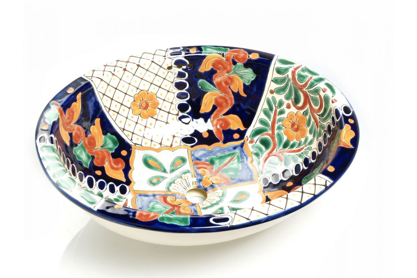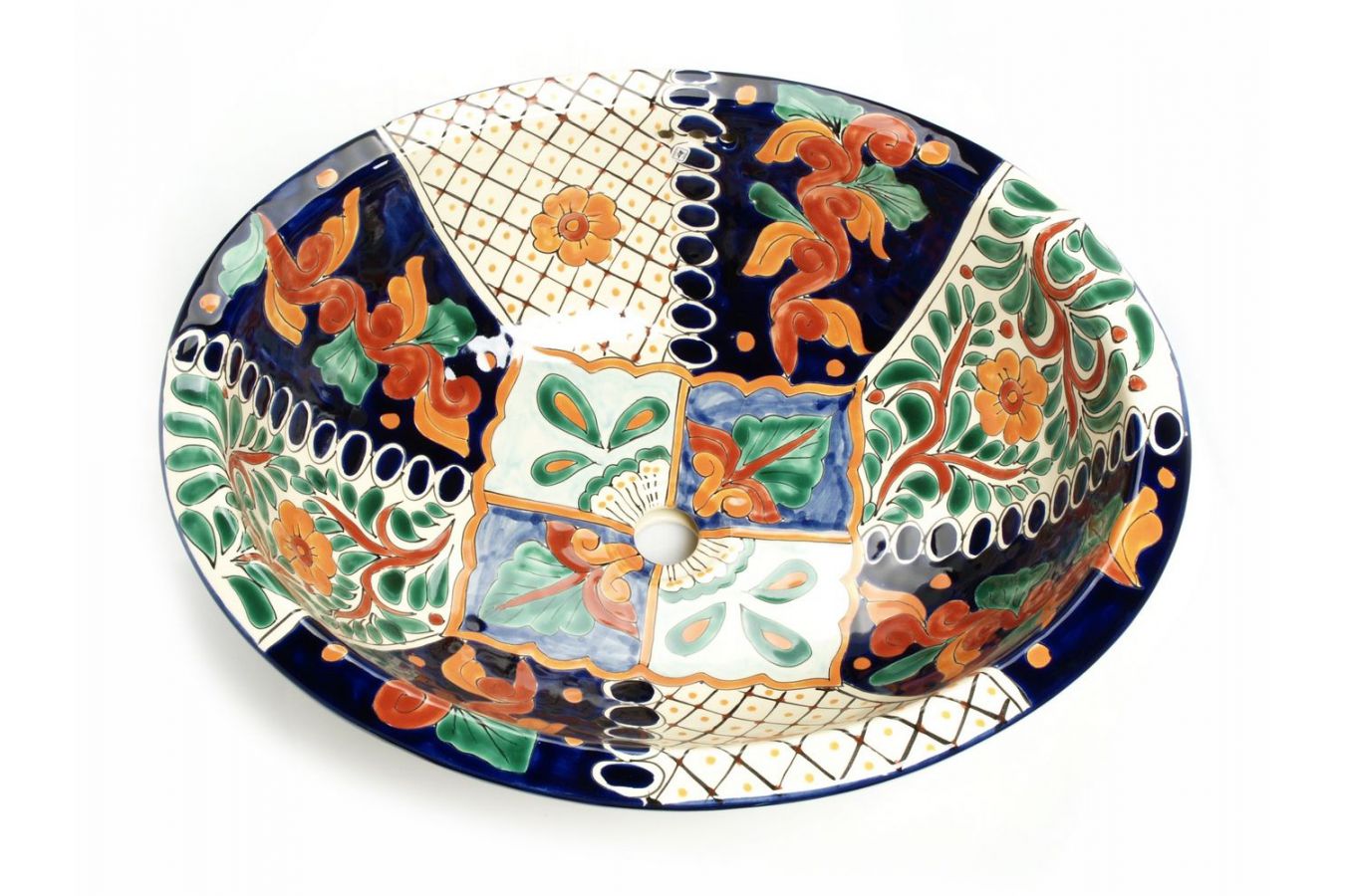 Керамичен мексикански умивалник, ръчно изработен от занаятчии. Мивката работи добре в аранжировка с всеки плот или шкаф.