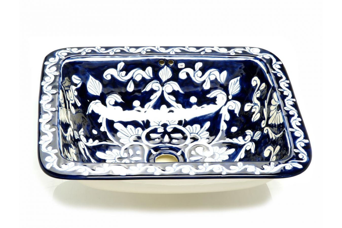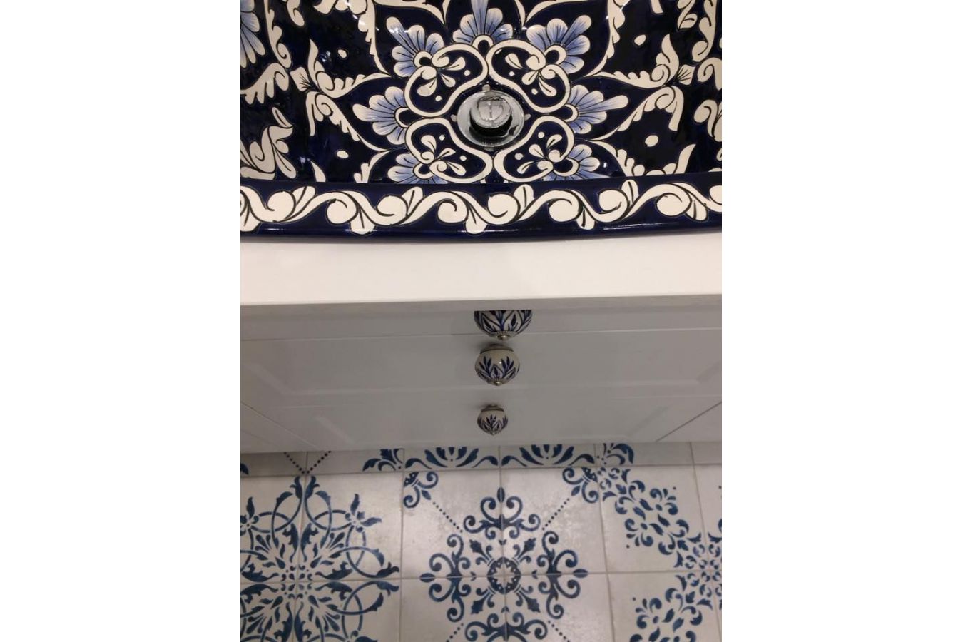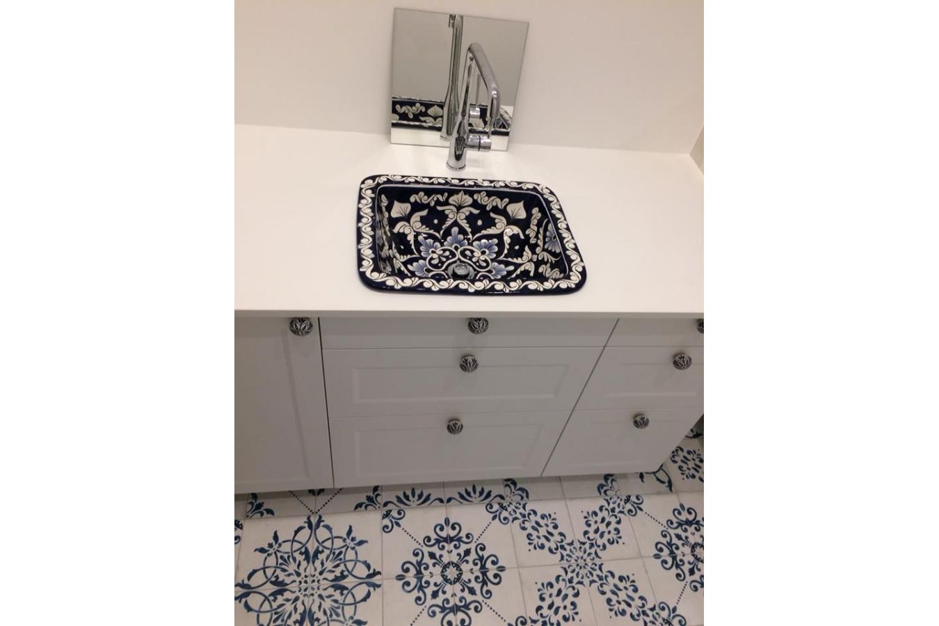 Керамичният умивалник е изработен и изрисуван от мексикански майстори.