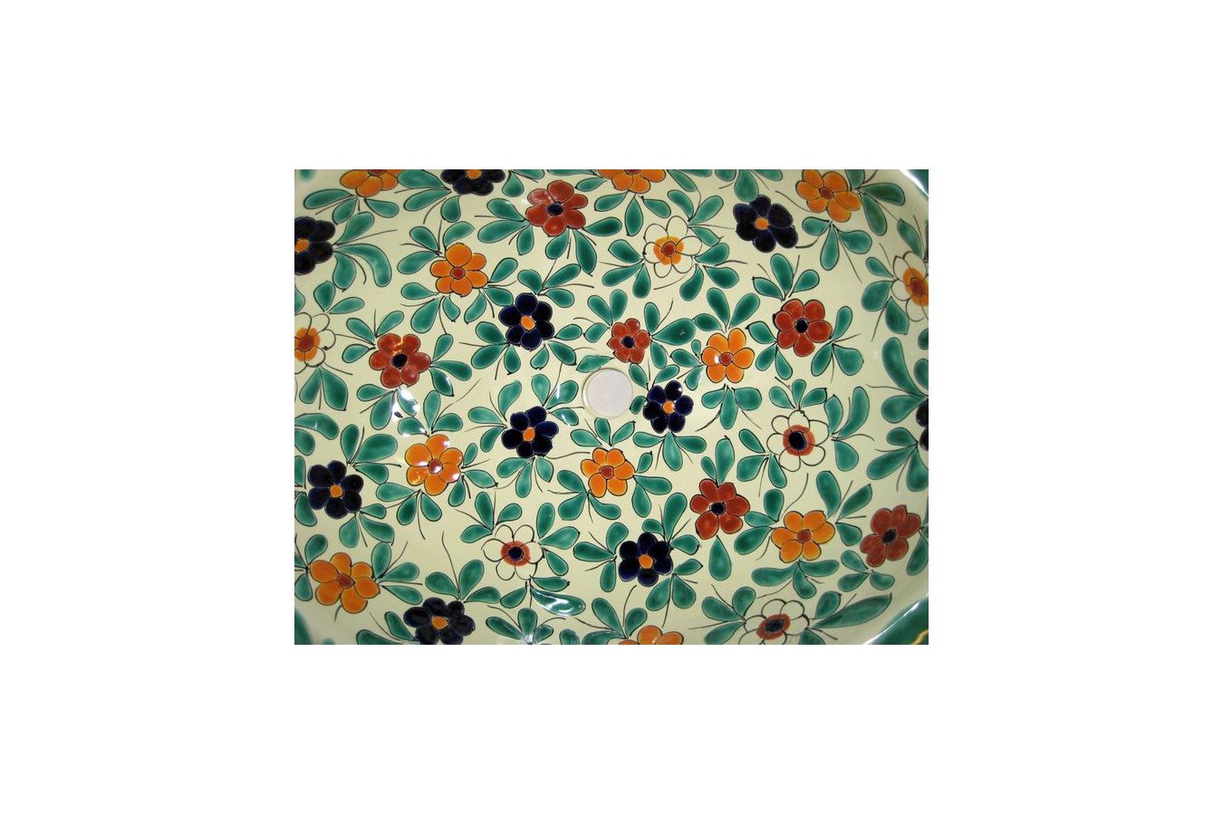 Керамичният умивалник е изработен и изрисуван от мексикански майстори.