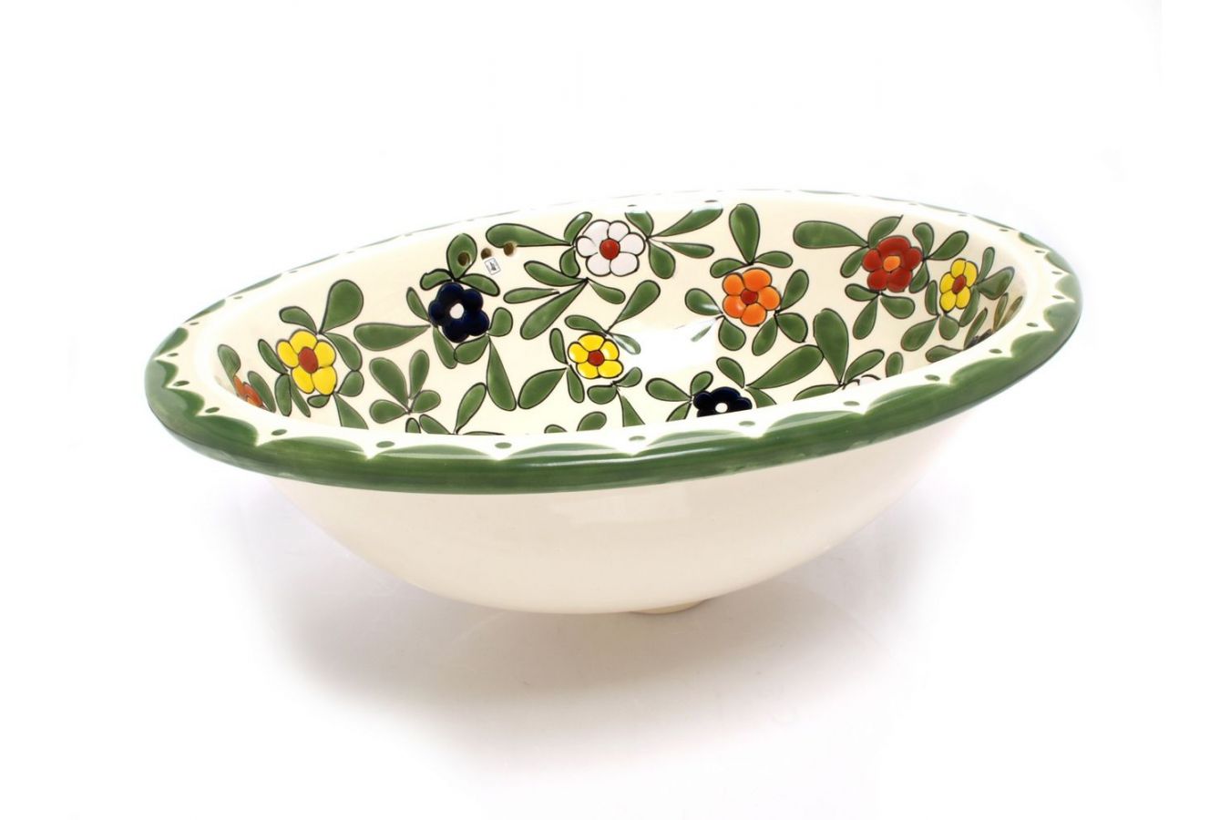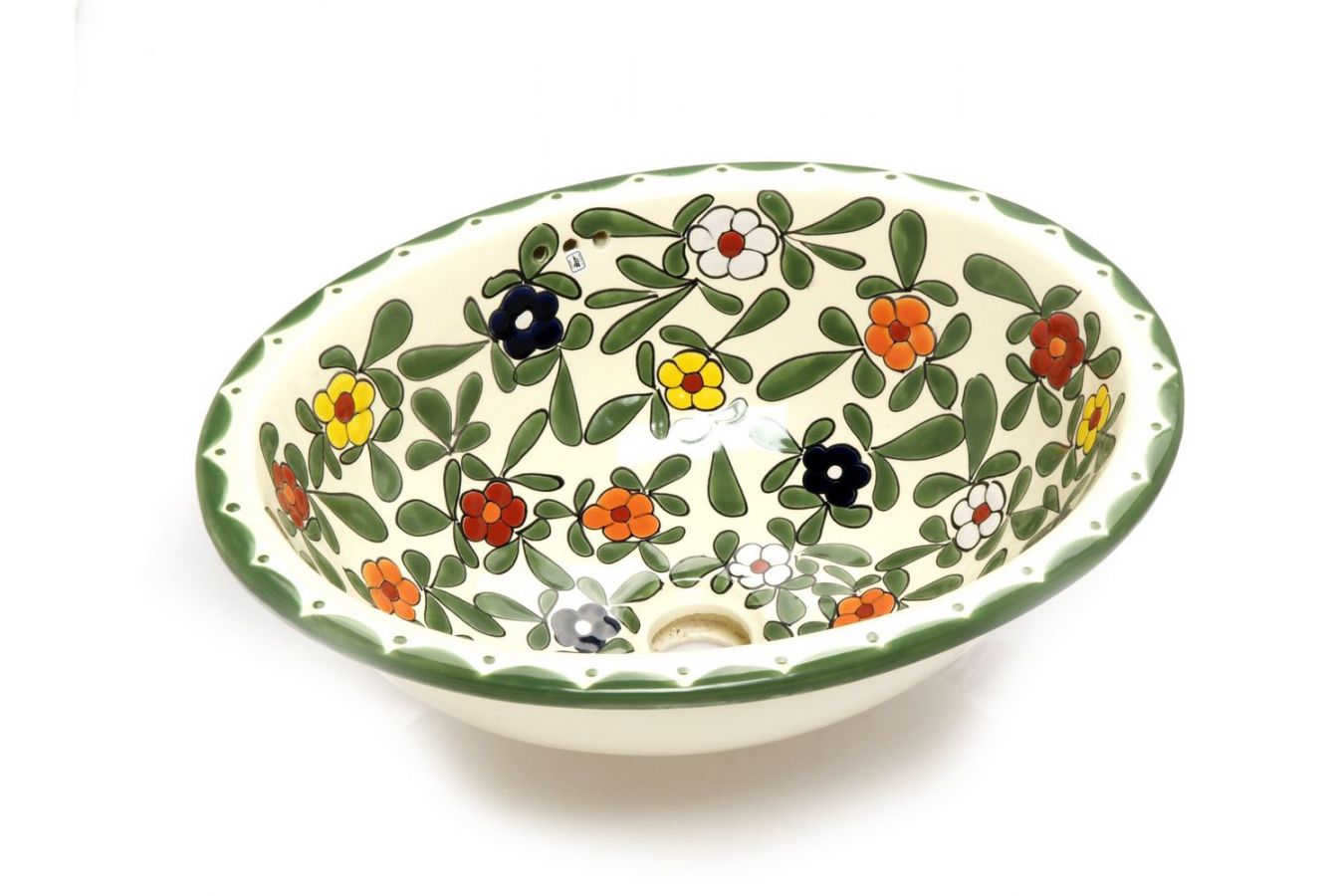 • Керамичен умивалник, ръчно декориран от художника в Мексико.
