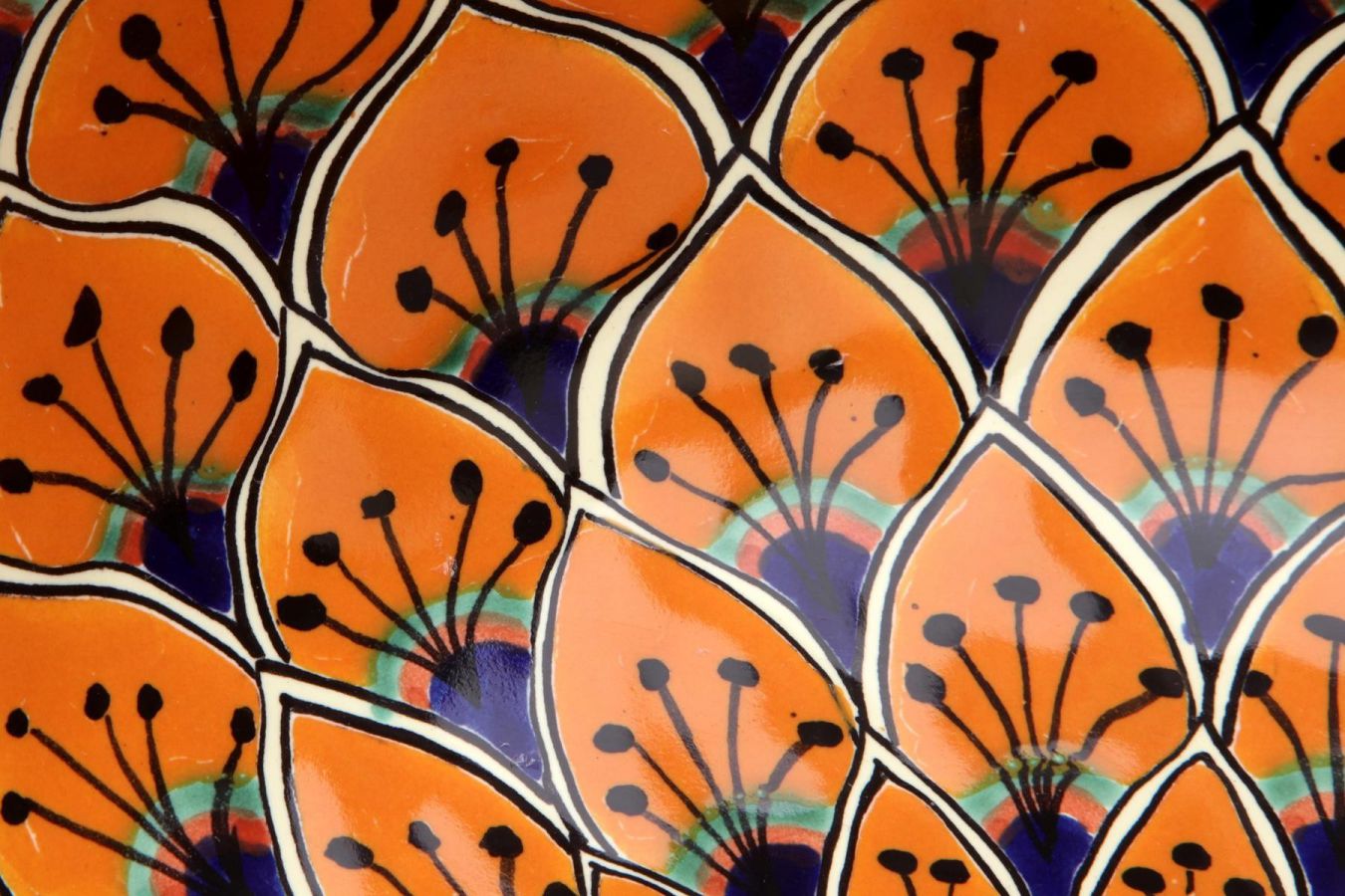 Керамичен умивалник за плот, произведен в Мексико. Богато декорирана и ръчно рисувана мексиканска мивка. Умивалникът е остъклен, което го прави устойчив на надраскване и протриване на шарката.