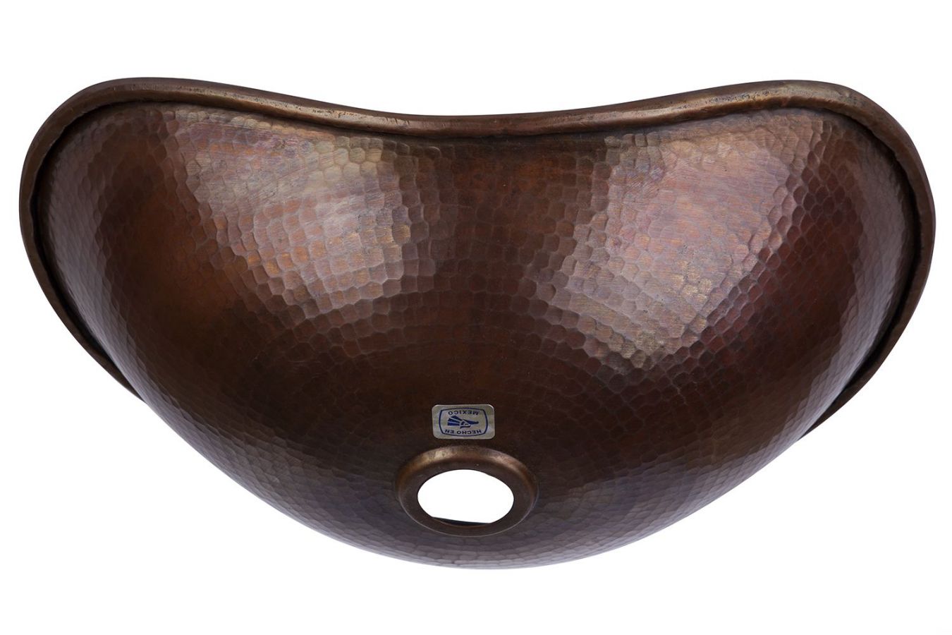 Вграждащ се умивалник от мед. Мивката произхожда от Мексико, където е ръчно изкована от занаятчия. Мивката не е подложена на корозия по време на употреба.