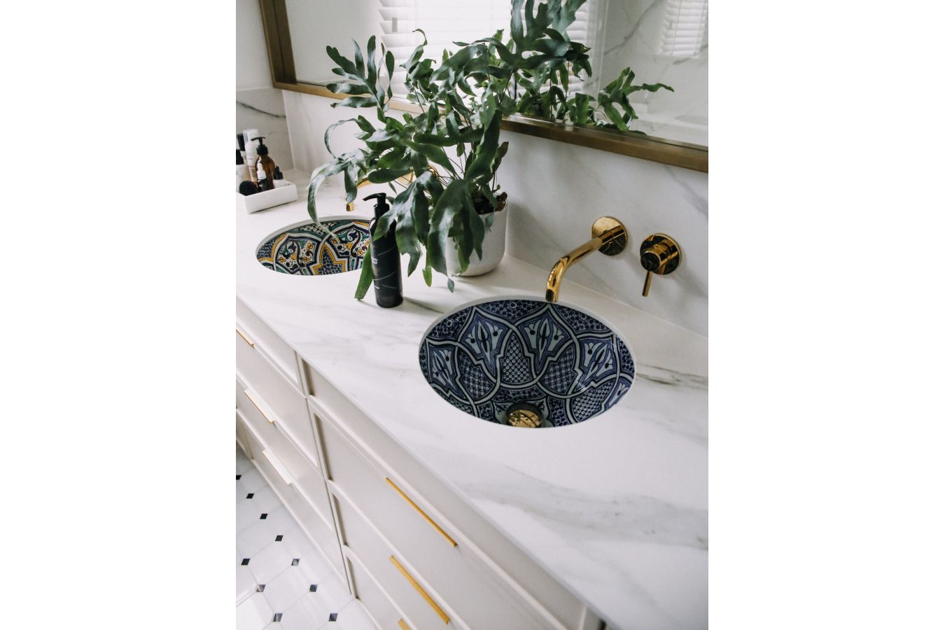 Ръчно рисувана турска мивка, произведена в района Кютахя, известен със своята керамика. Керамичният умивалник е остъклен, което го прави устойчив на надраскване и избледняване на цвета. Мивката ще се впише в интериора на всяка баня.