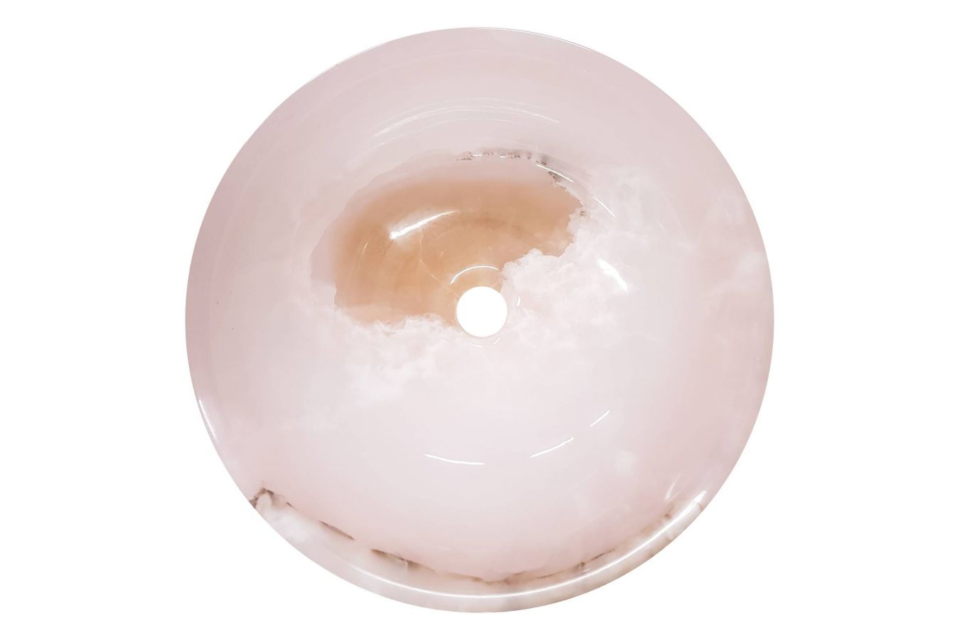 Умивалник за плот от оникс. Всеки умивалник е уникален и ръчно изработен с прецизност. Неравномерният цвят на оникса придава уникален цвят на мивките.