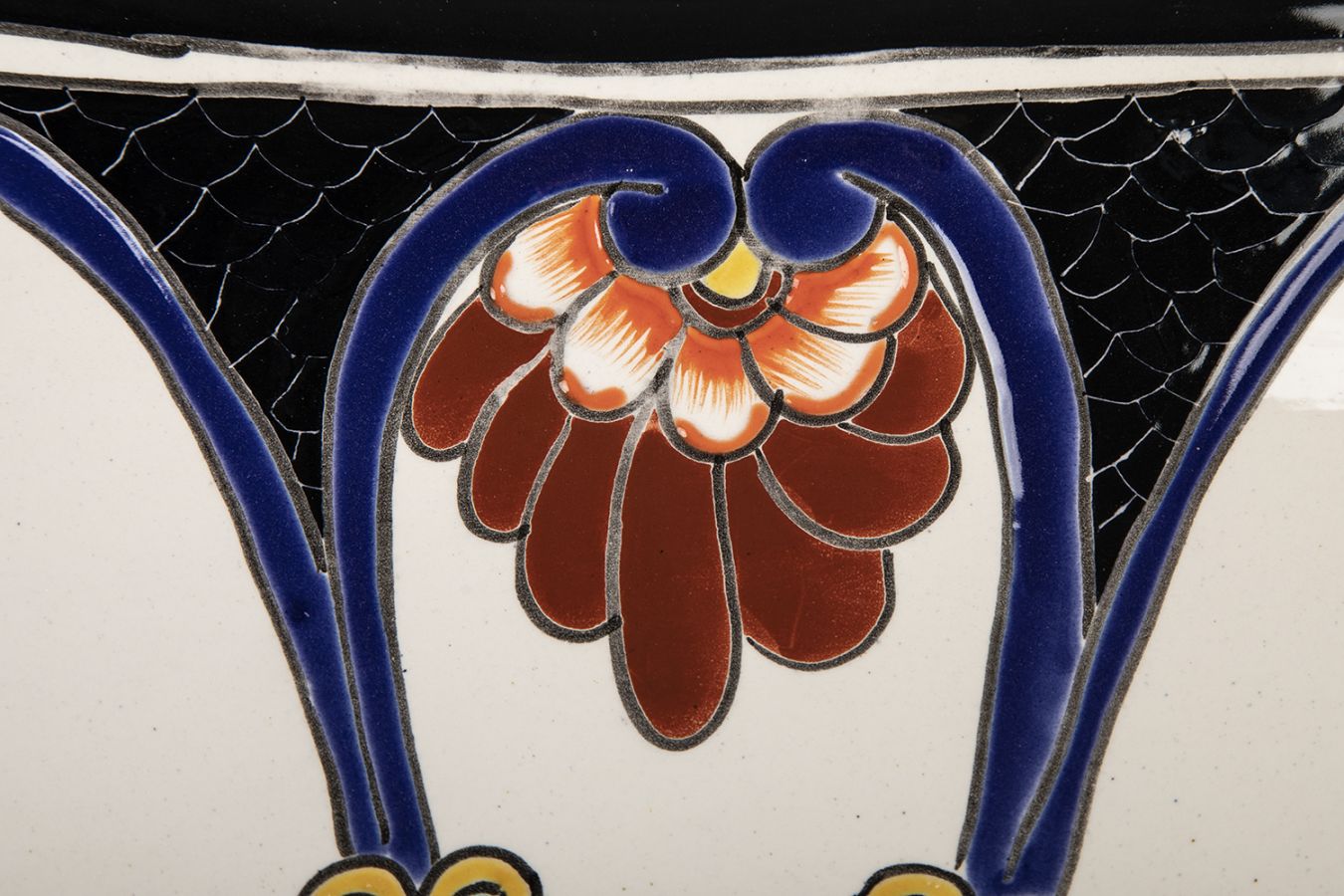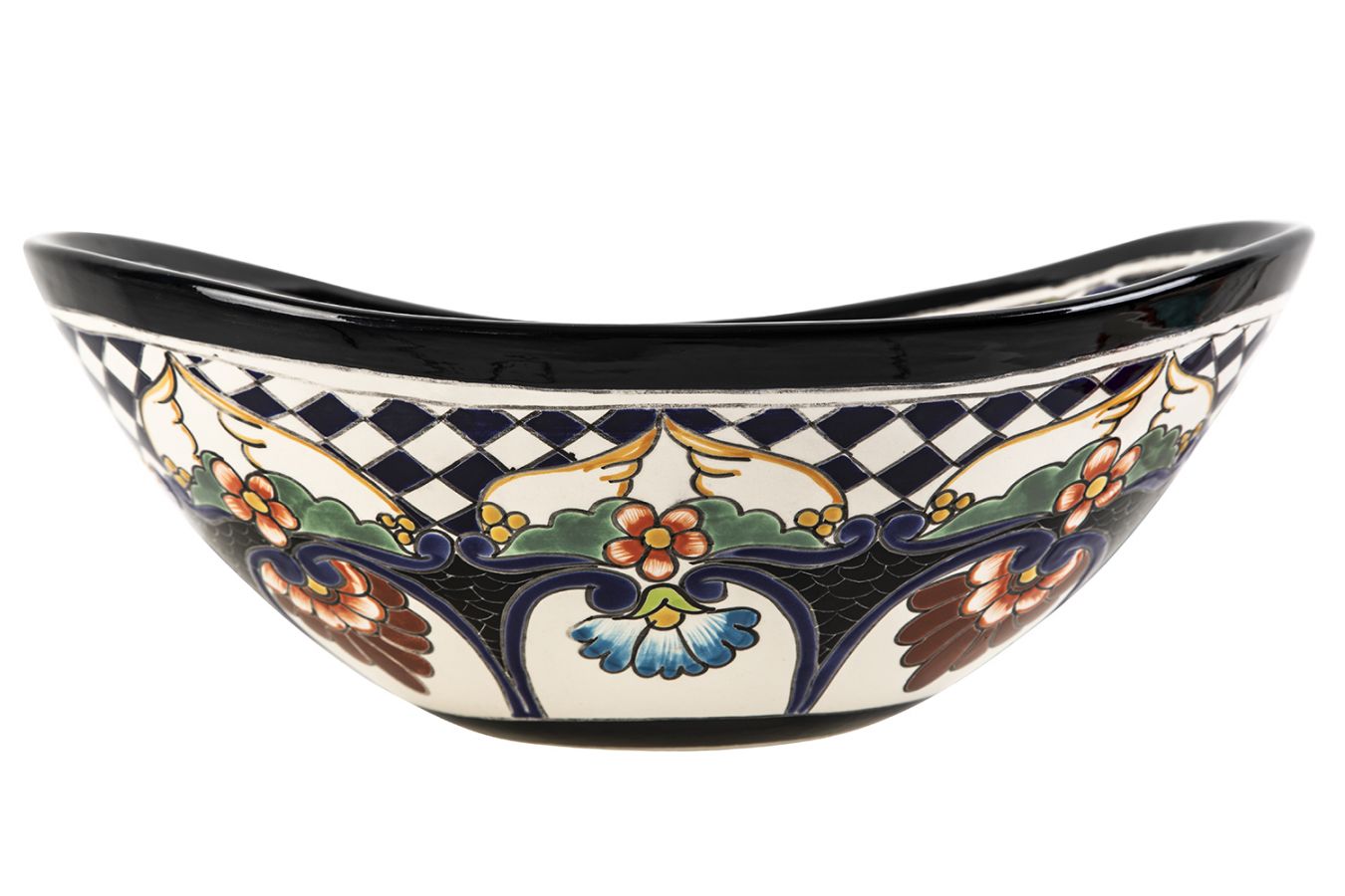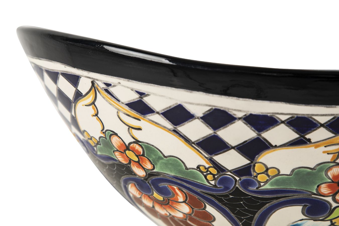 Керамичен умивалник за плот, произведен в Мексико. Богато декорирана и ръчно рисувана мексиканска мивка. Умивалникът е остъклен, което го прави устойчив на надраскване и протриване на шарката.