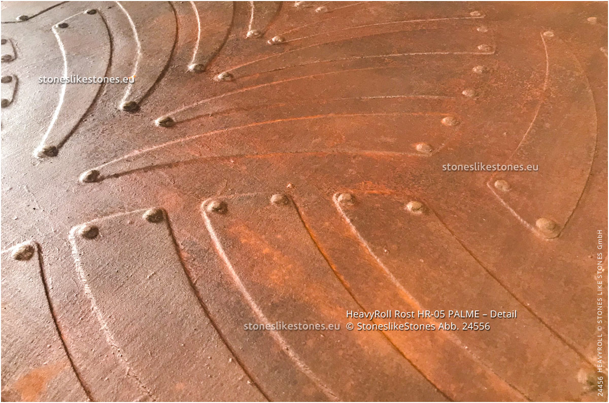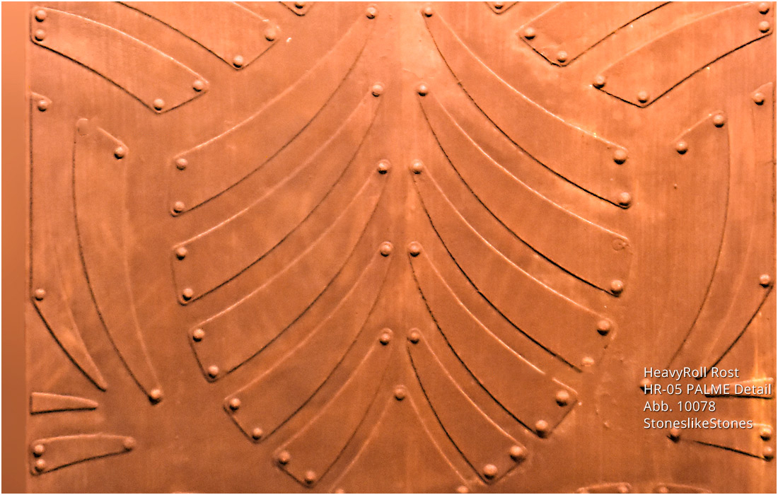 Гъвкавите минерални тапети корозирал метал и кортен стомана HeavyRoll перфектно пресъздават излъчването на ръждясалите метални повърхности. Моделът е изцяло ръчно изработен, благодарение на което има автентичен, уникален и индивидуален облик. Серията декоративни фурнири HeavyRoll предлага широка гама от възможности за интериорен дизайн.