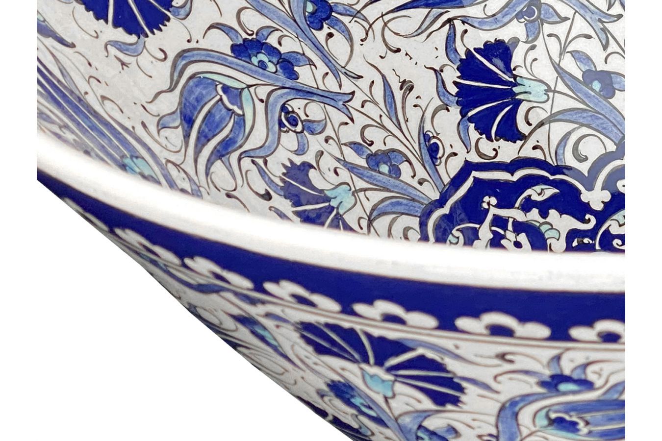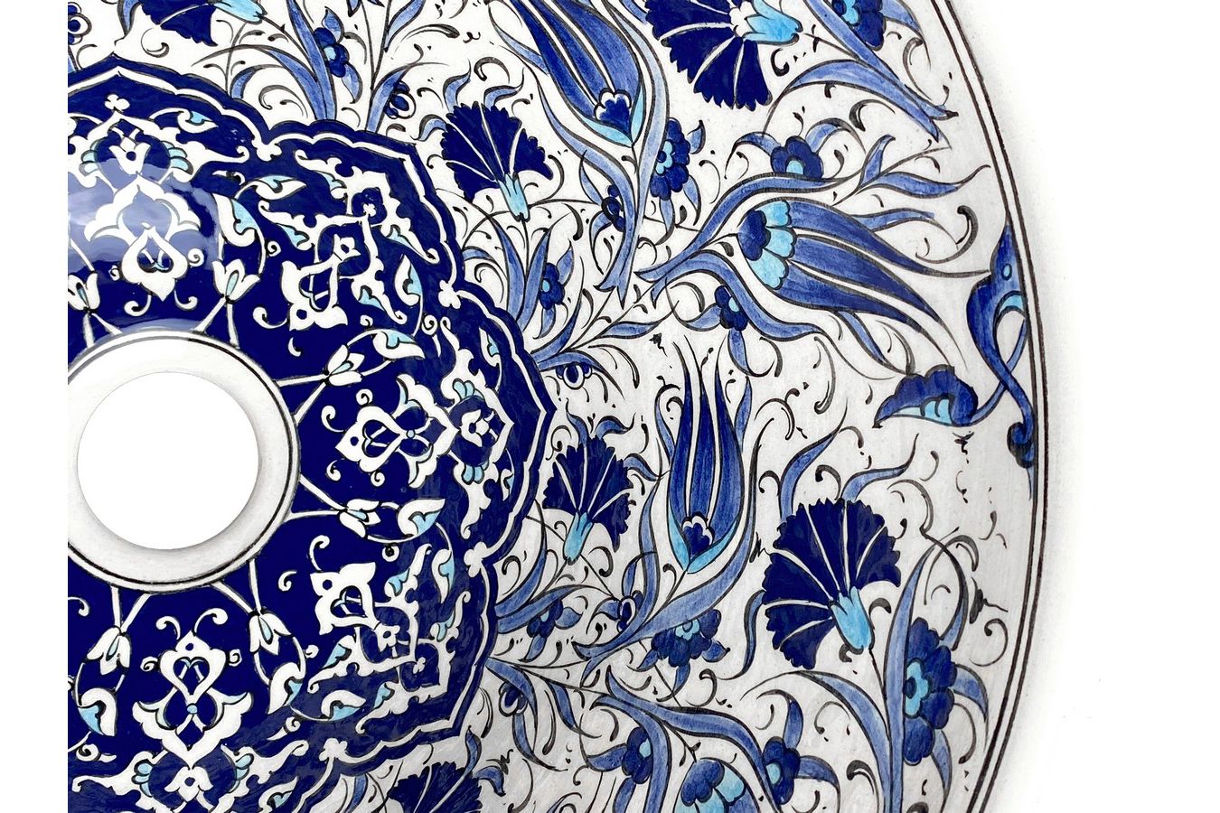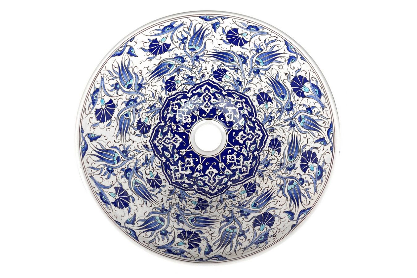 Ръчно рисувана турска мивка, произведена в района Кютахя, известен със своята керамика. Керамичният умивалник е остъклен, което го прави устойчив на надраскване и избледняване на цвета. Мивката ще се впише в интериора на всяка баня.