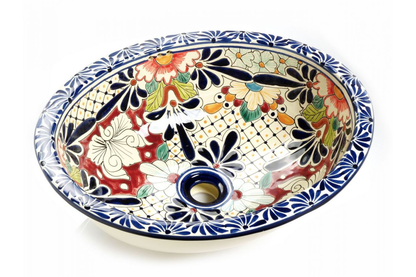 • Керамичен умивалник, ръчно декориран от художник от Мексико.