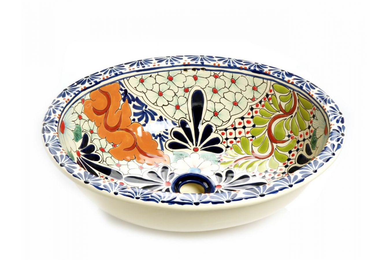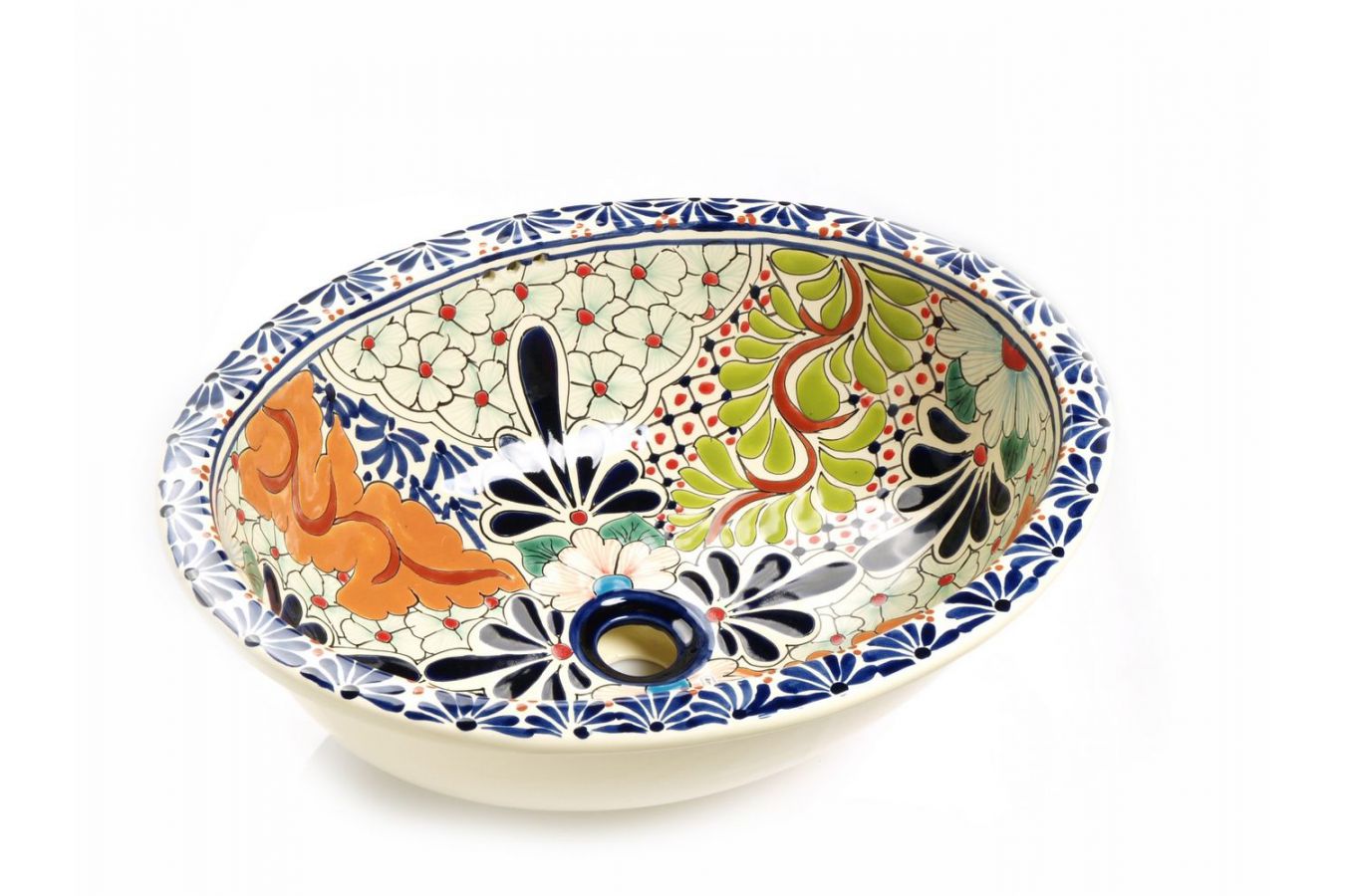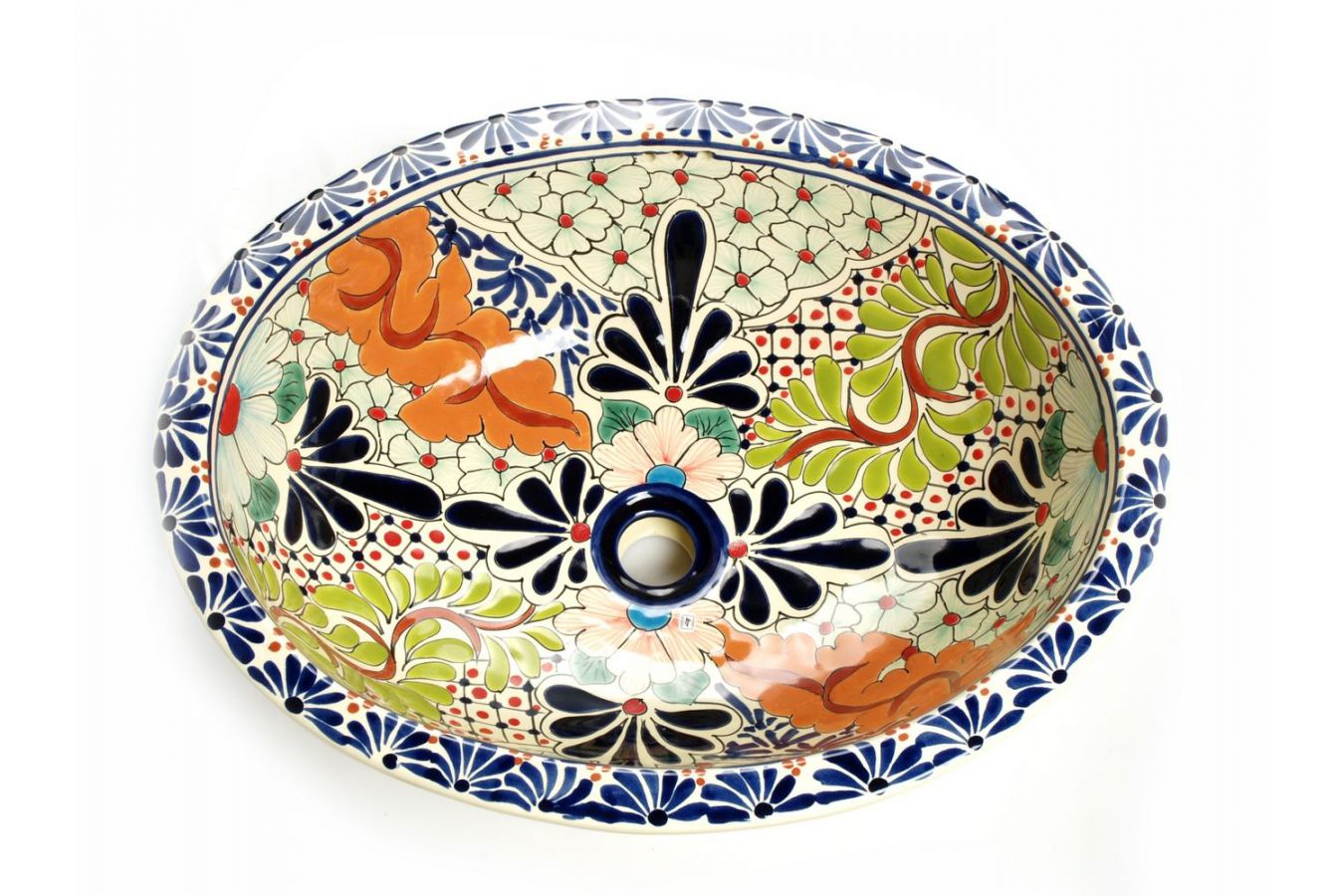 Керамичният умивалник е изработен и изрисуван от мексикански майстори.